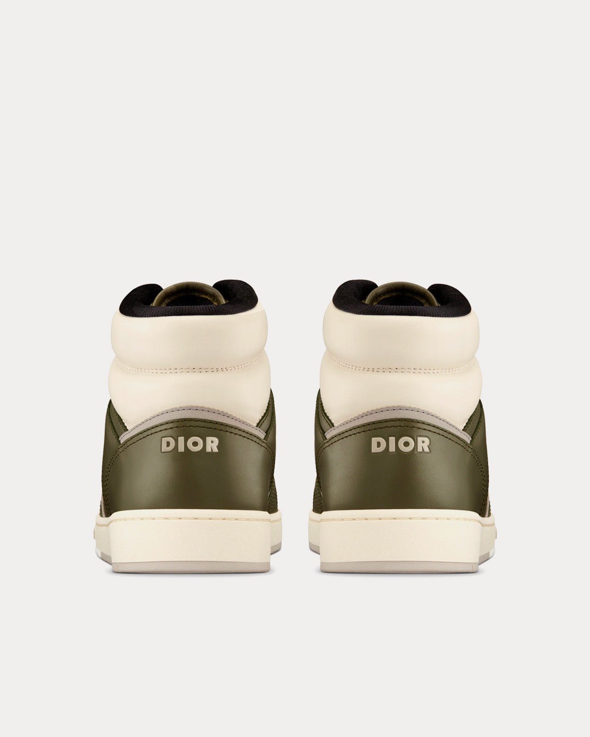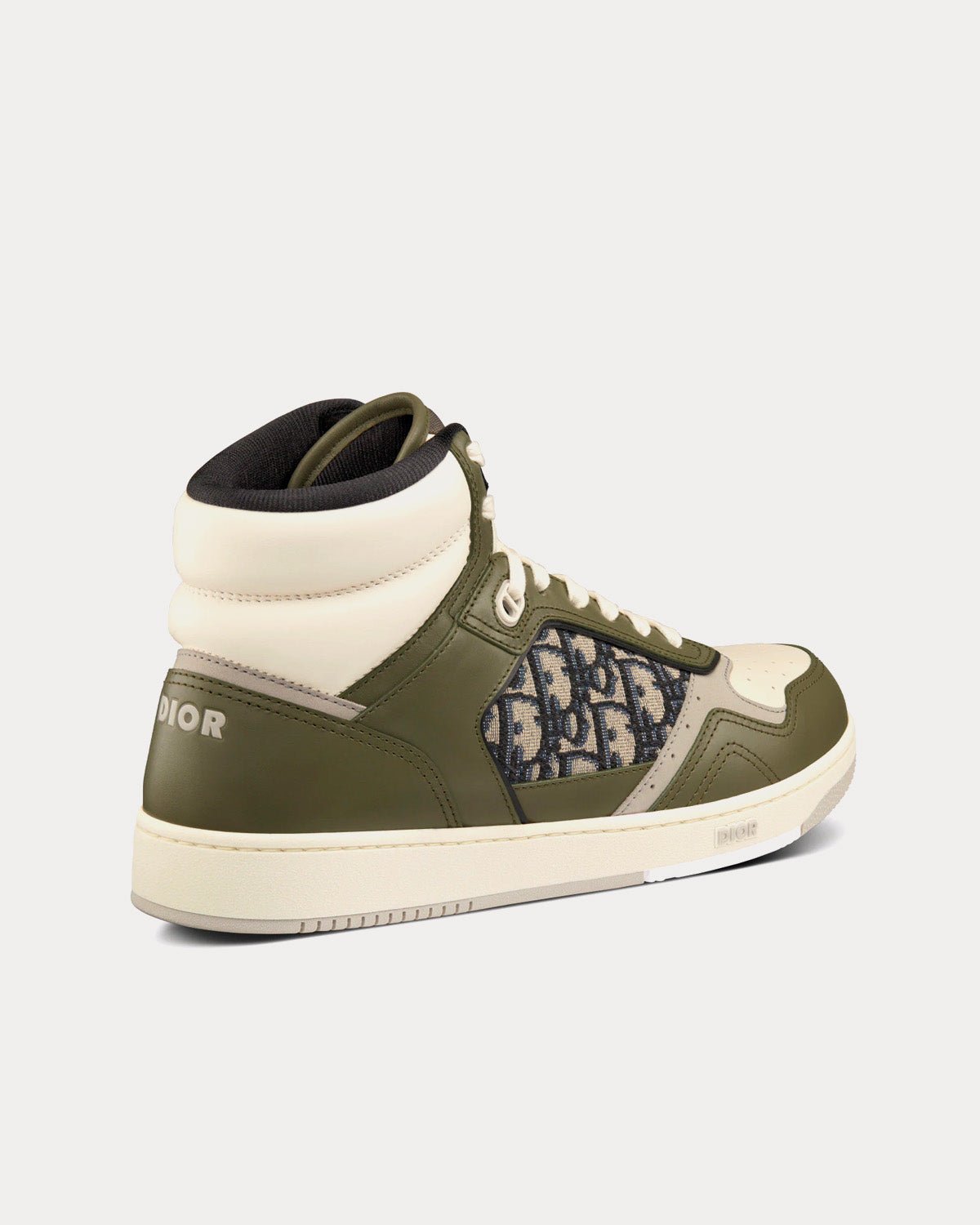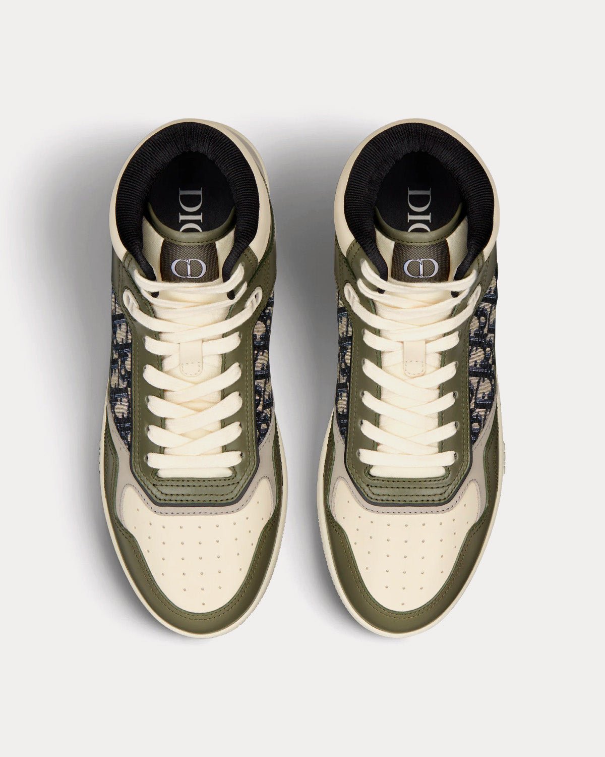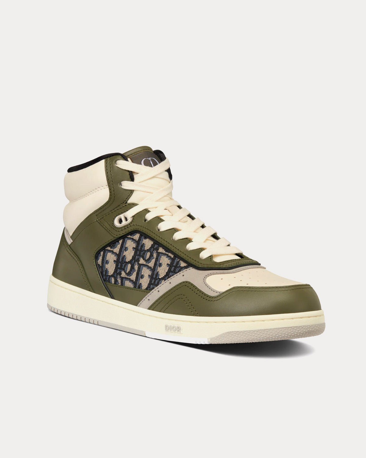 Baskets montantes Dior B27 en cuir de veau lisse olive et crème avec jacquard Dior Oblique beige et noir