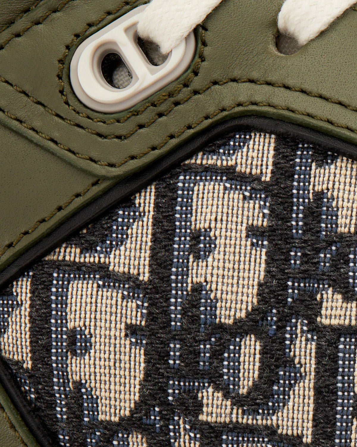 La sneaker montante B27 est déjà un incontournable de la Maison. Confectionnée en cuir de veau lisse olive et crème, elle est ornée d’empiècements jacquard Dior Oblique beiges et noirs sur les côtés. Elle est rehaussée d’œillets CD Icon ainsi que de nombreux détails emblématiques sur la semelle, la languette et l’arrière en caoutchouc bicolore. Une tige montante matelassée complète le design pour un confort et un maintien accrus. Cette sneaker montante sublimera toutes vos tenues.