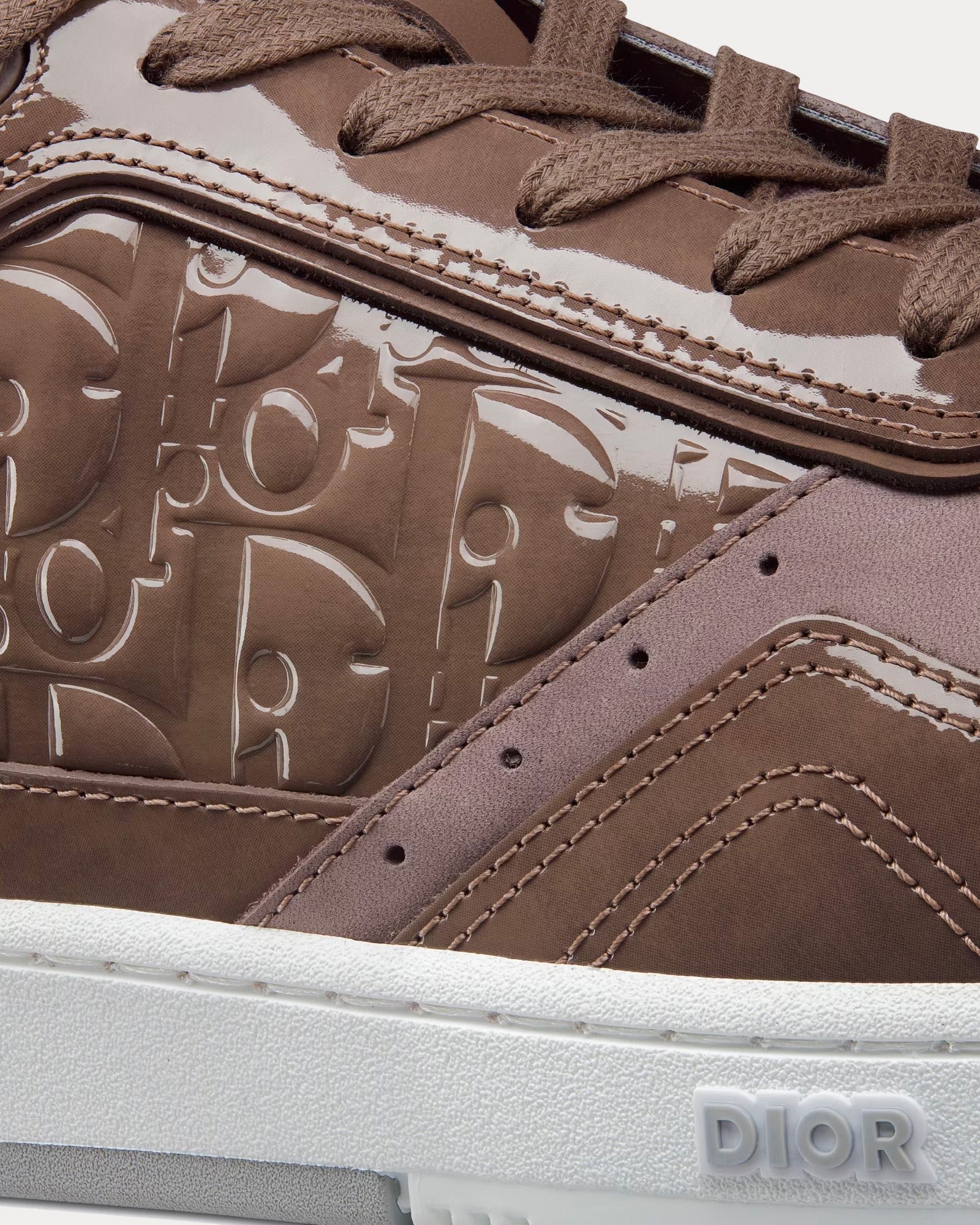 Les baskets basses pour hommes DiorB27 en cuir de veau verni prune et cuir Dior Oblique Gravity présentent un cuir de veau effet verni embossé du motif emblématique Dior Oblique, une languette signature CD Icon, la signature Dior sur la semelle et le talon, une cheville coussinée, une fermeture à lacets avec œillets CD Icon, une doublure en mesh technique et des semelles extérieures en caoutchouc noir.