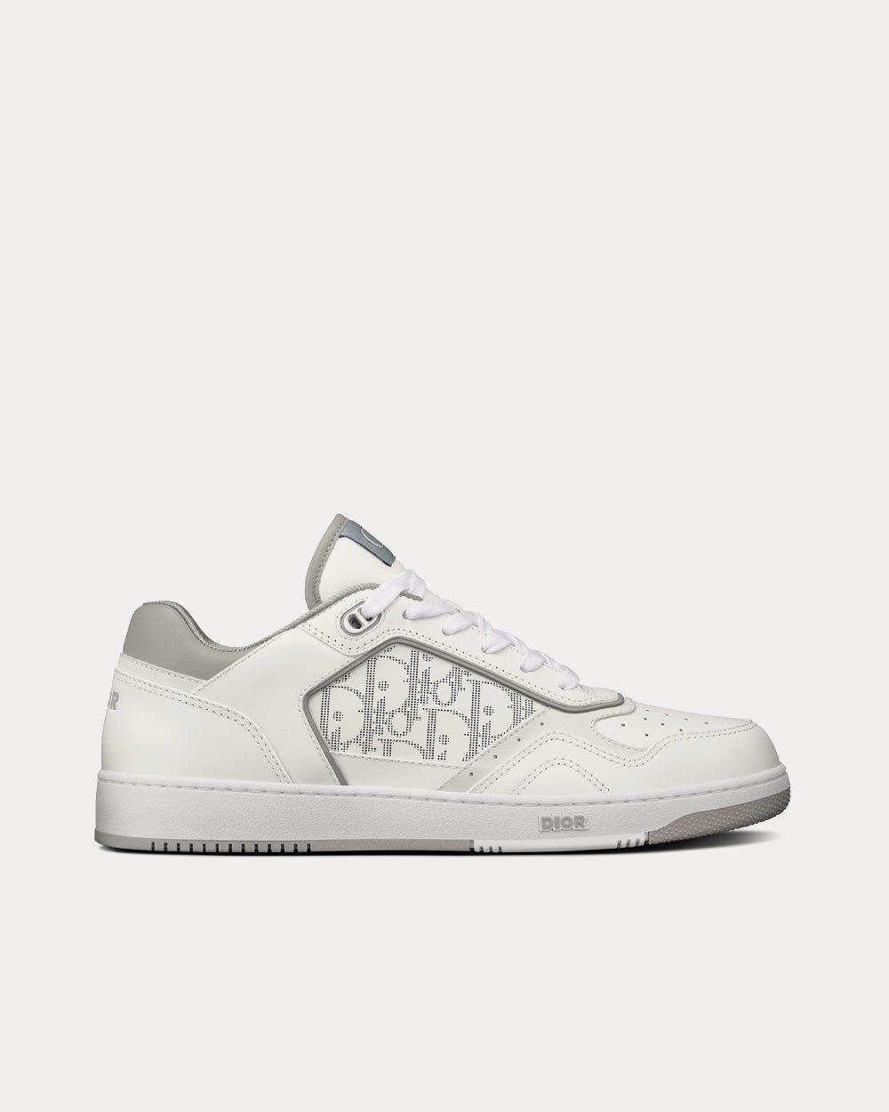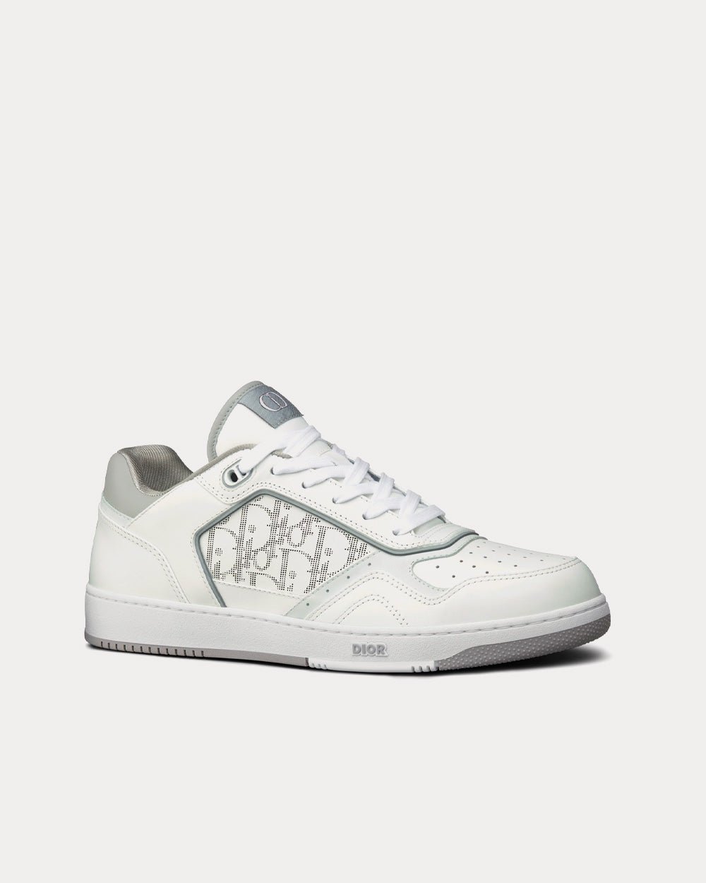 Baskets basses Dior B27 en cuir de veau lisse blanc et gris avec cuir Dior Oblique Galaxy blanc