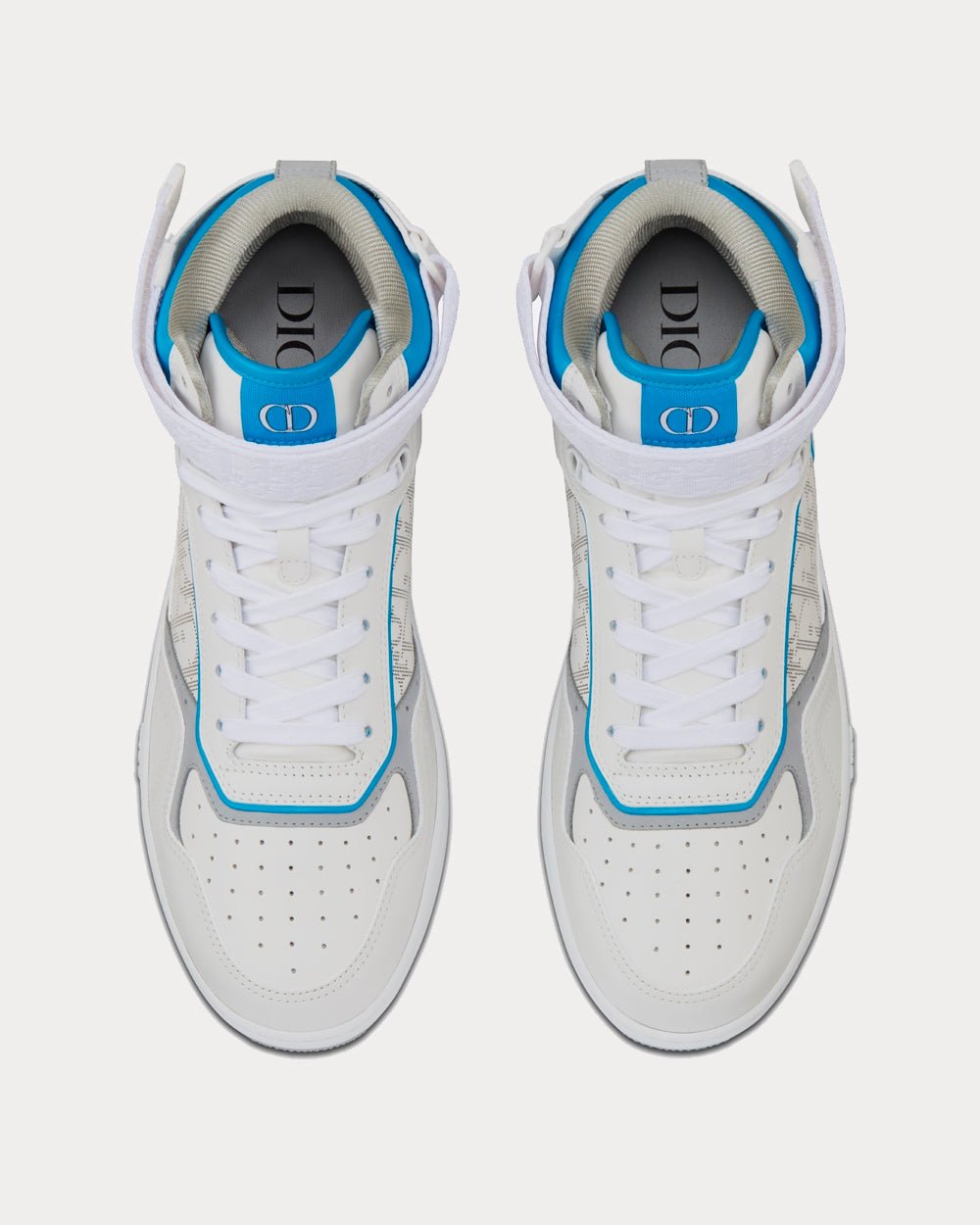 Baskets montantes Dior B27 en cuir de veau lisse blanc et bleu clair avec cuir Dior Oblique Galaxy blancBaskets montantes Dior B27 en cuir de veau lisse blanc et bleu clair avec cuir Dior Oblique Galaxy blanc