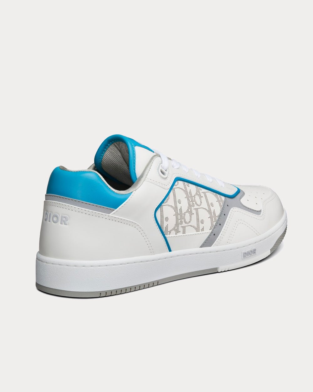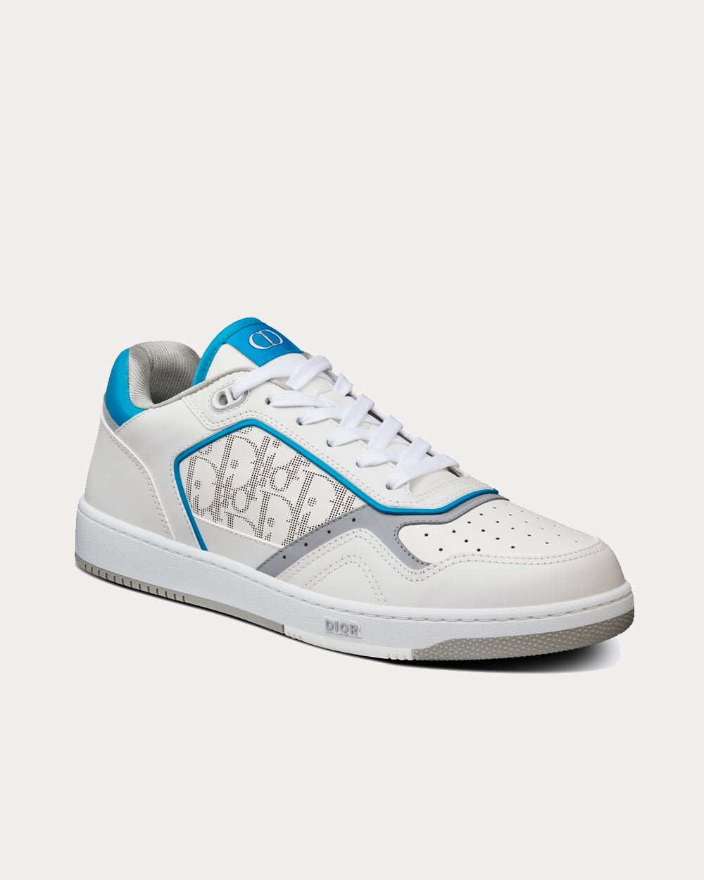 Baskets basses Dior B27 en cuir de veau lisse blanc et bleu clair avec cuir Dior Oblique Galaxy blanc