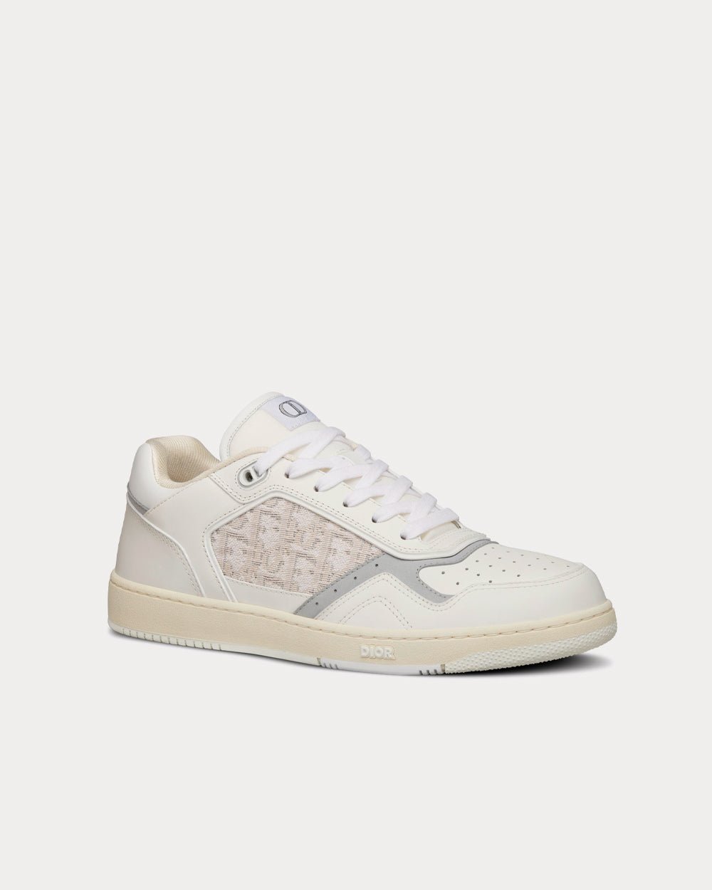 Baskets basses Dior B27 en cuir de veau lisse blanc et jacquard Dior Oblique blanc cassé
