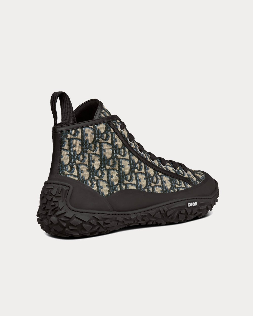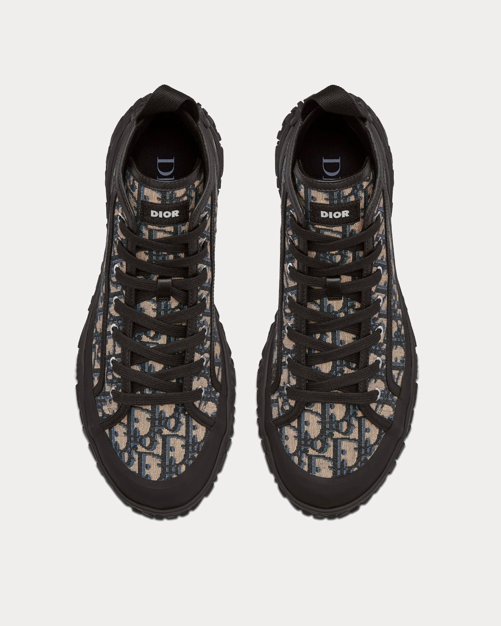 Baskets montantes Dior B28 beiges et noires en jacquard Dior Oblique et caoutchouc noir
