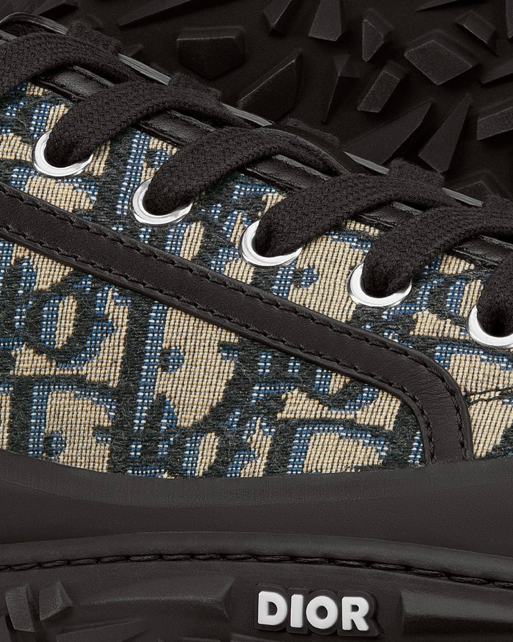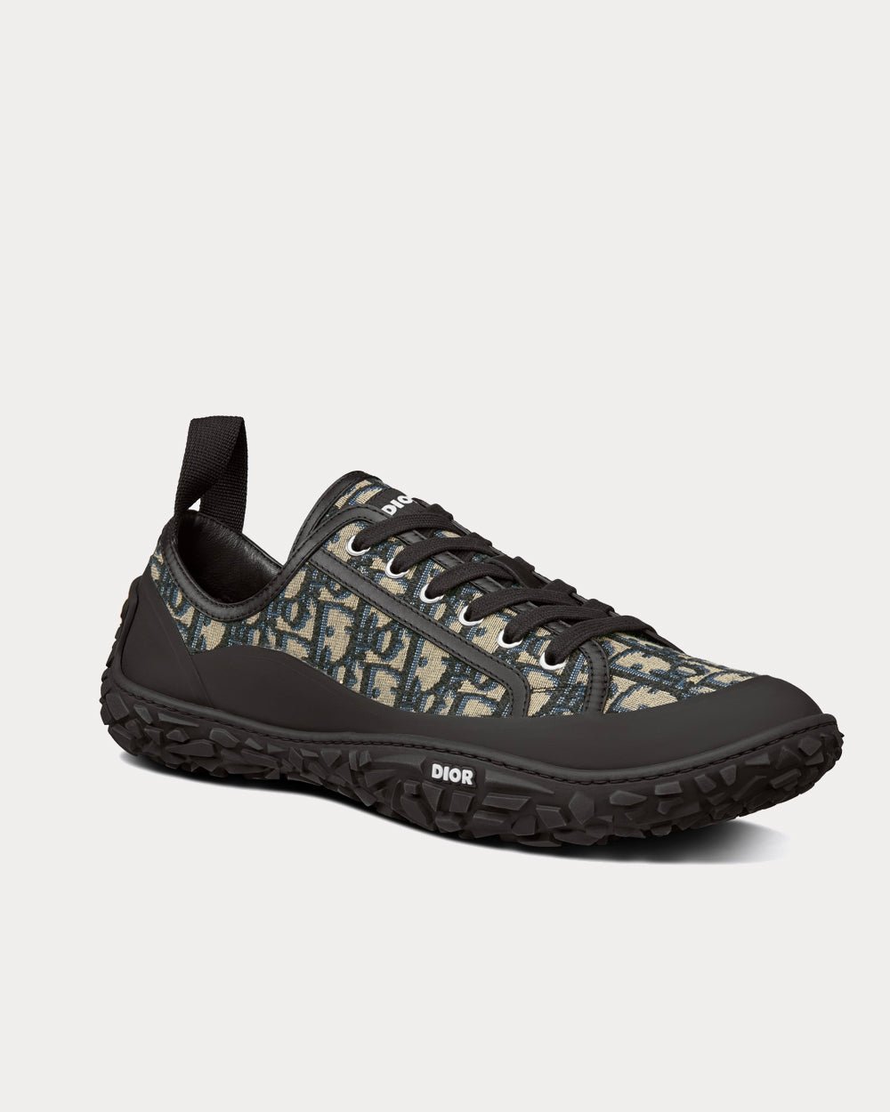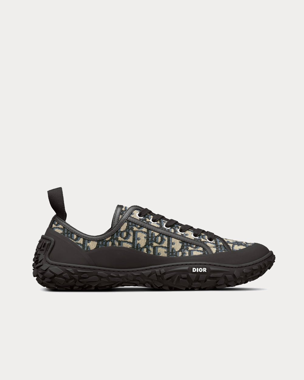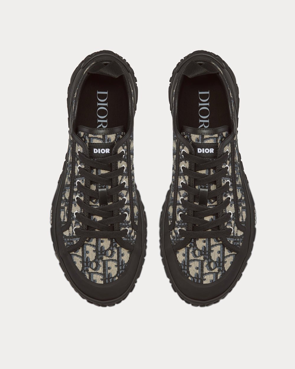 Baskets basses Dior B28 beiges et noires en jacquard Dior Oblique et caoutchouc noir