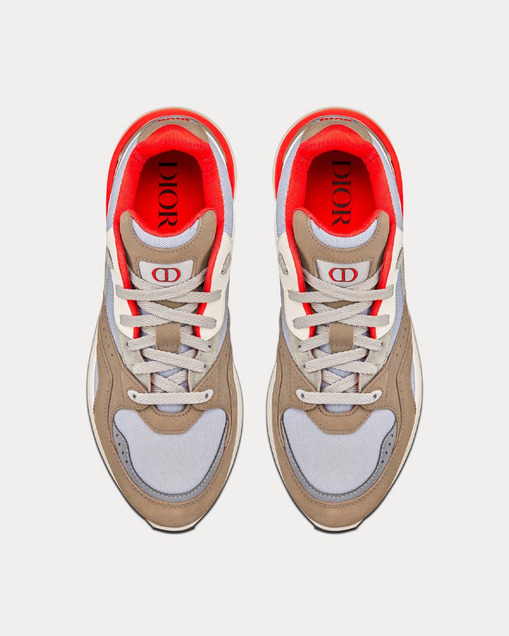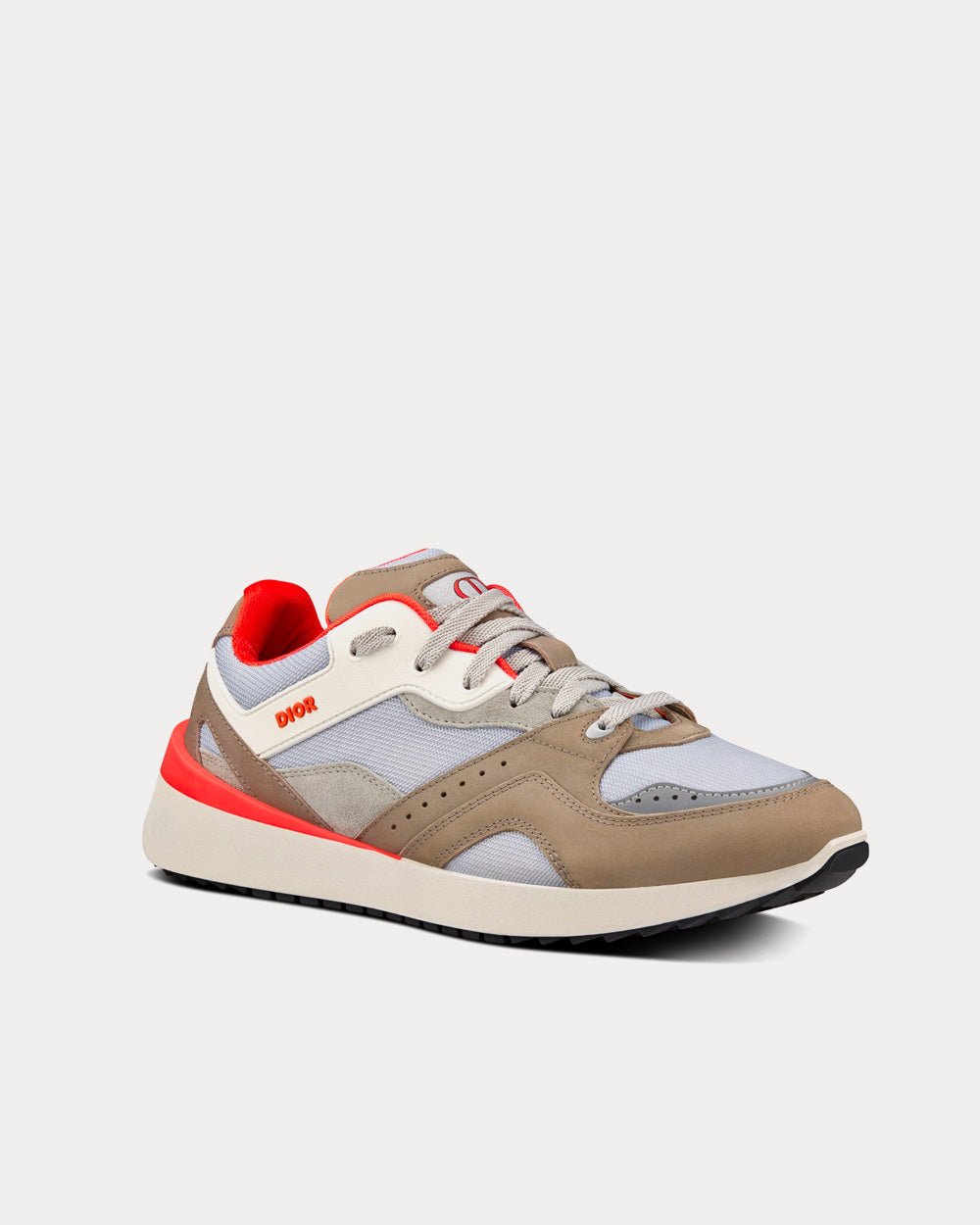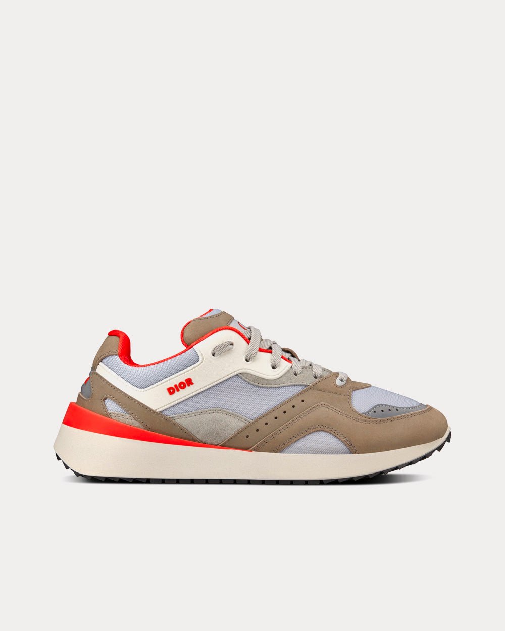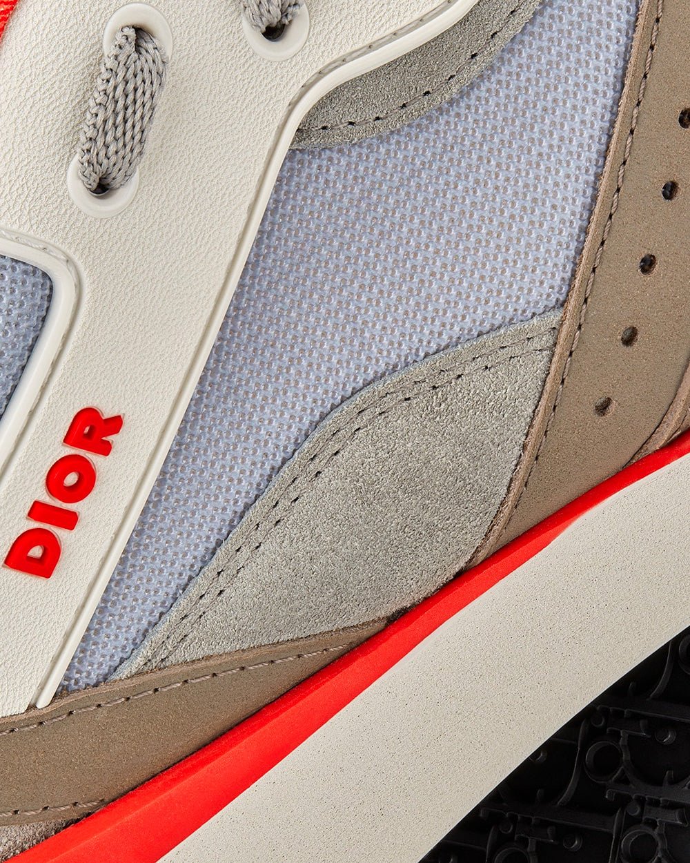 Baskets basses Dior B29 en mesh technique gris et daim avec cuir de veau lisse marron