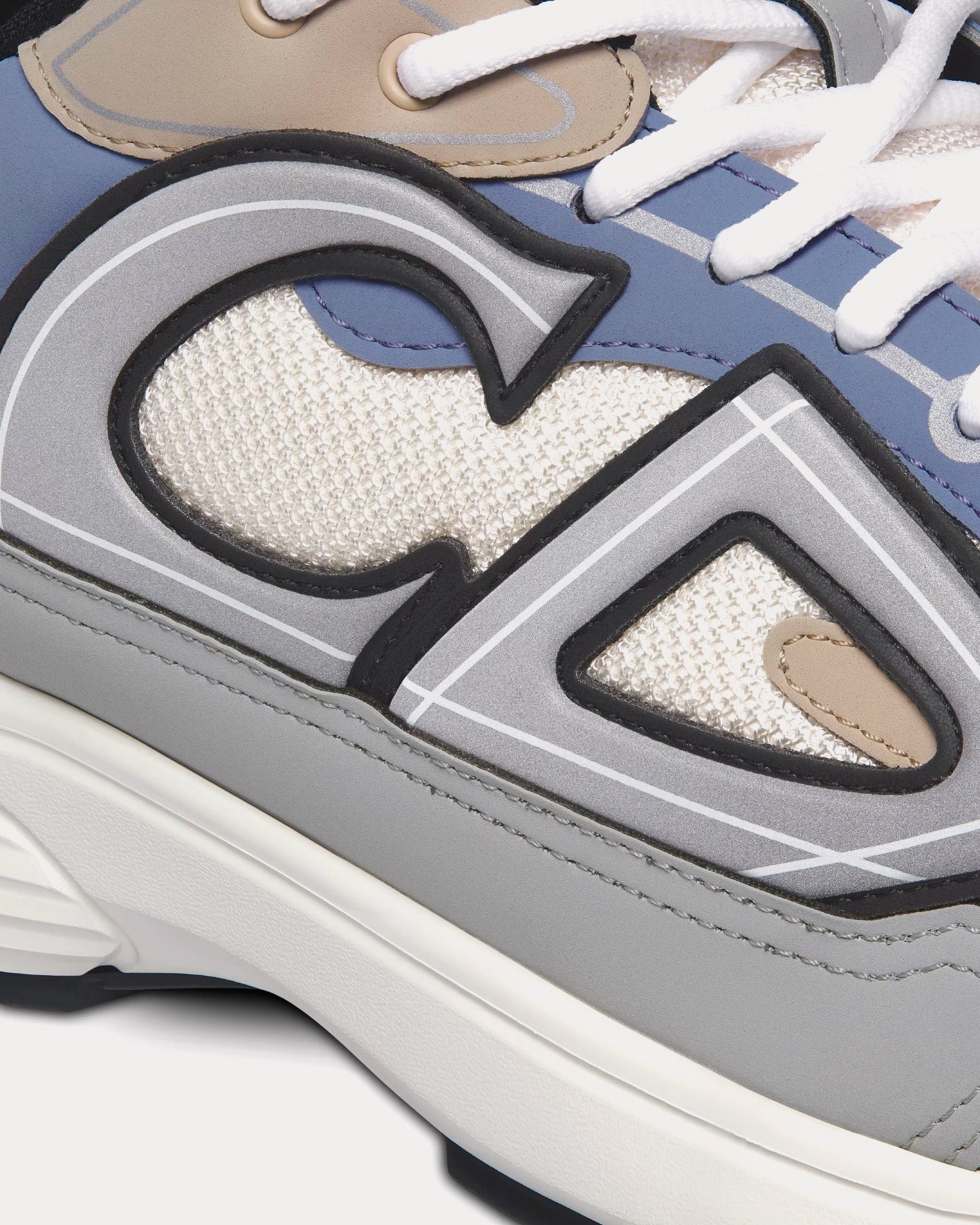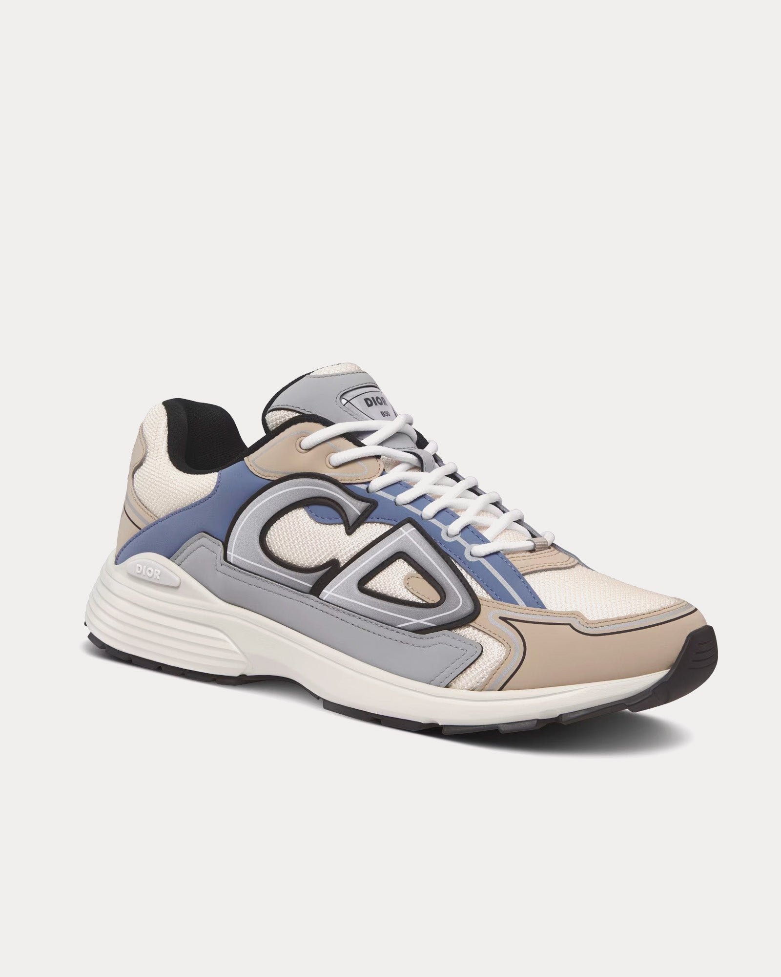 Baskets basses Dior B30 en mesh crème et tissu technique beige, bleu et gris