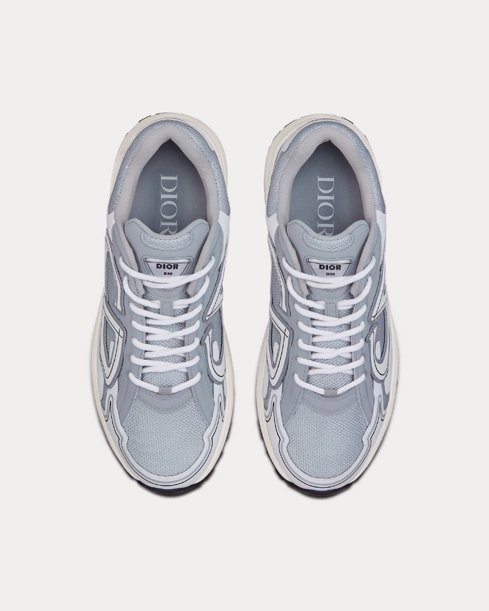 Baskets basses Dior B30 en mesh gris et tissu technique blanc