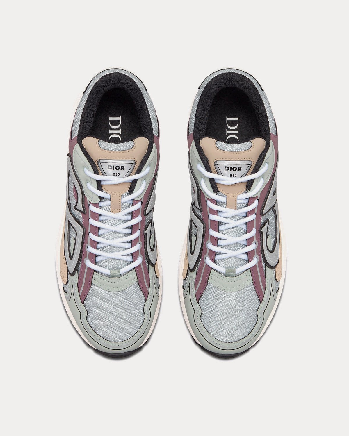 Baskets basses Dior B30 en mesh gris et tissu technique vert clair, beige et lavandeBaskets basses Dior B30 en mesh gris et tissu technique vert clair, beige et lavande