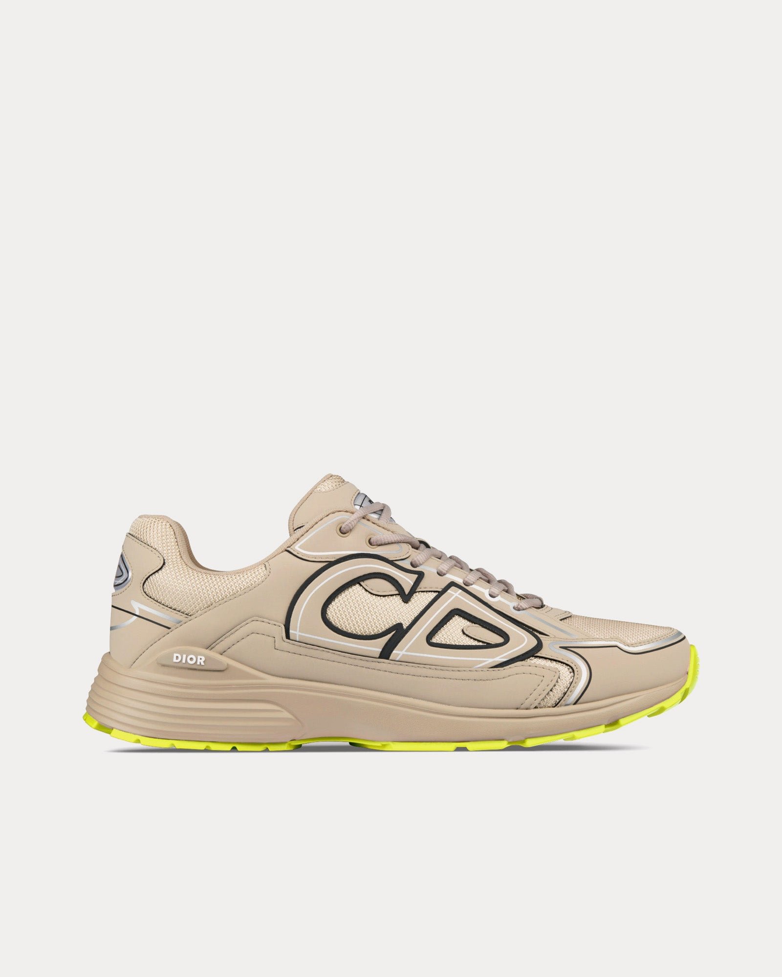 Les baskets basses Dior B30 pour hommes de couleur beige sont confectionnées en mesh et tissu technique et présentent une languette signature Dior B30, une fermeture à lacets, une doublure en cuir de veau et mesh technique, une semelle extérieure en caoutchouc sculpté ultra-légère avec bordure signature Dior, une semelle bicolore avec signature Dior, B30 et CD30, et une construction soudée.