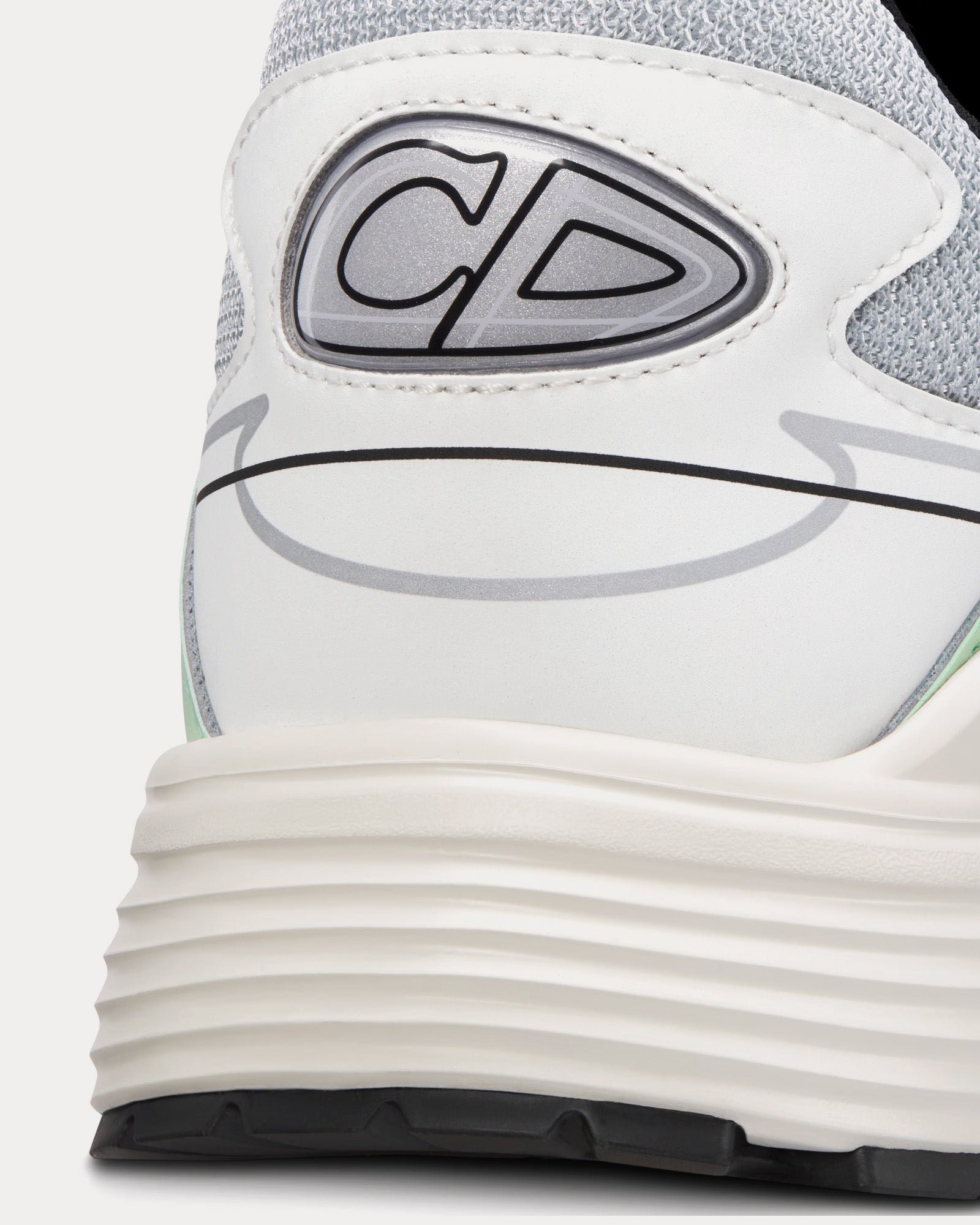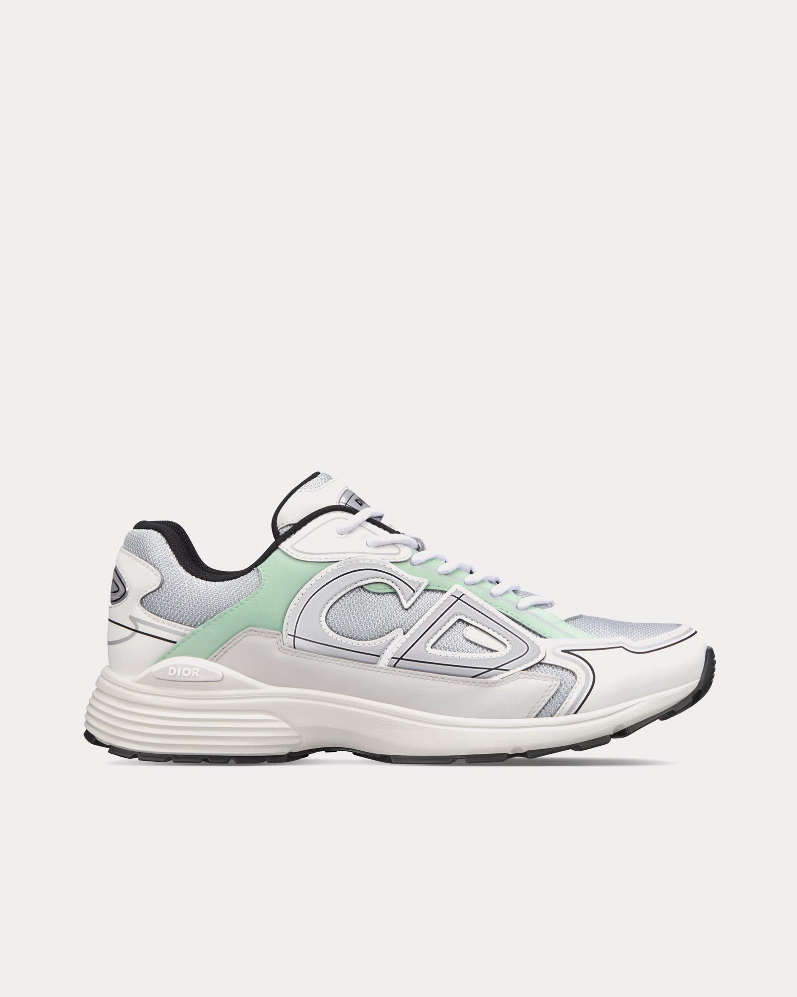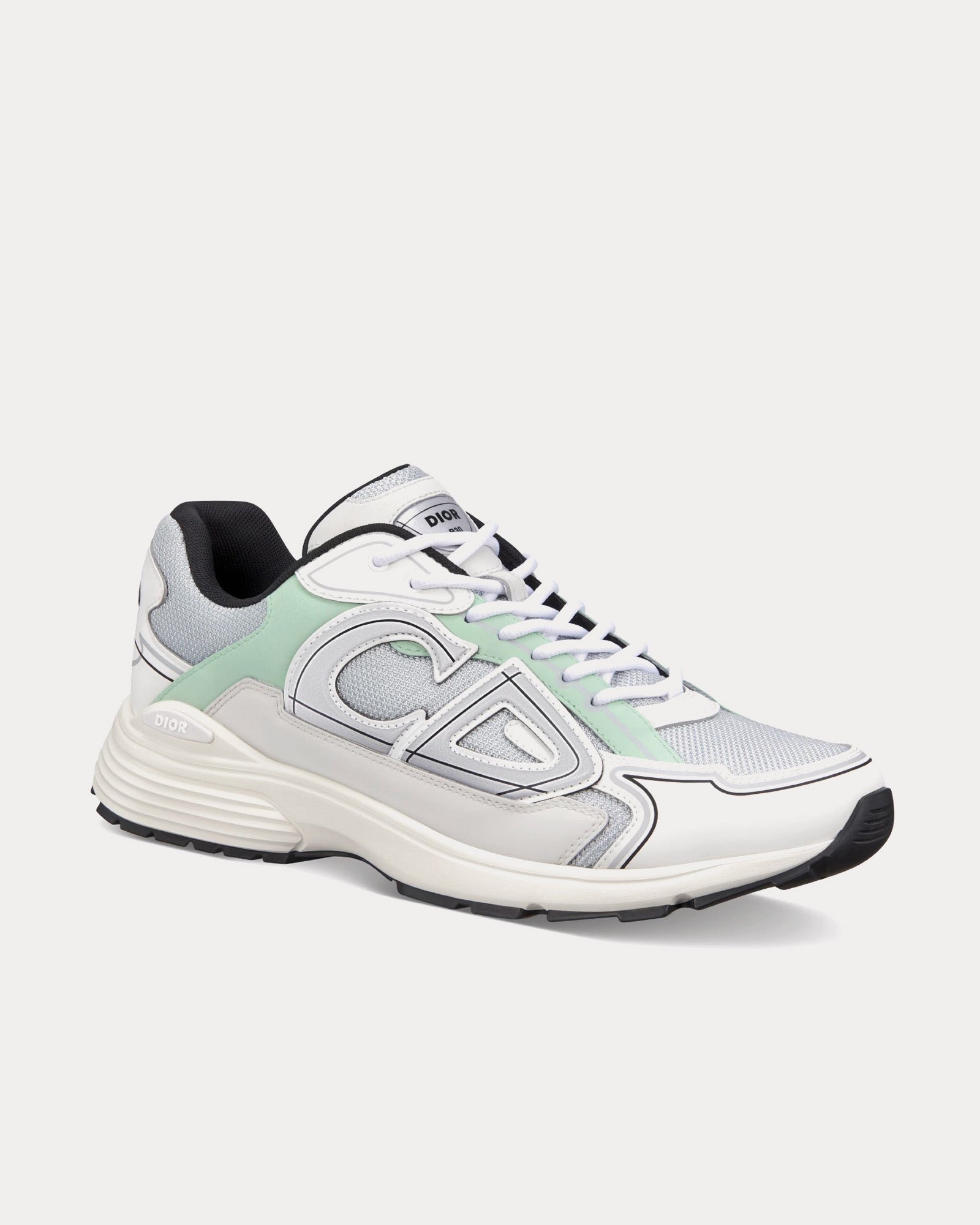 Les baskets basses pour homme Dior B30 en gris, vert clair, blanc et noir sont confectionnées en mesh et tissu technique. Elles sont dotées d’une languette signature Dior B30, d’une fermeture à lacets, d’une doublure en cuir de veau et mesh technique, d’une semelle extérieure en caoutchouc sculpté ultra-légère avec bordure signature Dior, d’une semelle bicolore avec signature Dior, B30 et CD30, et d’une construction soudée.