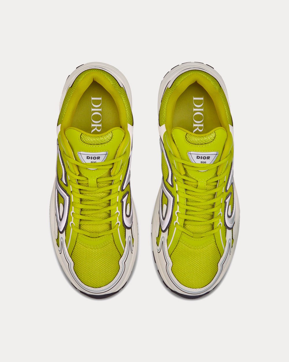 Nouveauté de la saison, la sneaker basse B30 est l’un des modèles phares de la collection. Confectionnée en mesh jaune et tissu technique blanc, elle arbore une signature graphique et réfléchissante « CD30 » et est ornée des signatures « DIOR B30 » et « CD30 » sur l’arrière et la languette. Sa semelle en caoutchouc sculpté ultra-légère est rehaussée de détails emblématiques, tandis que des élastiques intérieurs offrent un confort optimal. La sneaker B30 complètera toutes vos tenues décontractées grâce à sa silhouette moderne et sportive.