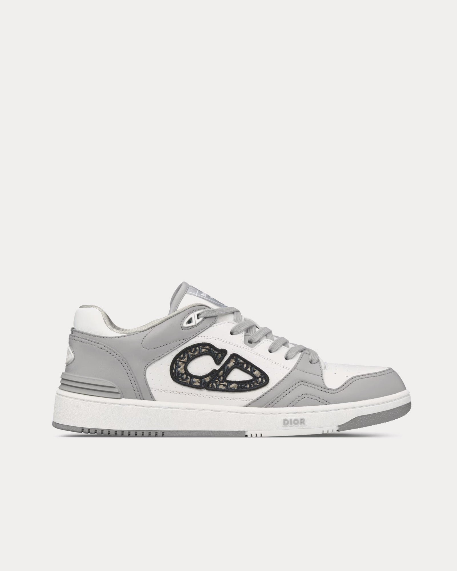 Baskets basses Dior B57 en cuir de veau lisse gris et blanc avec jacquard Dior Oblique beige et noir