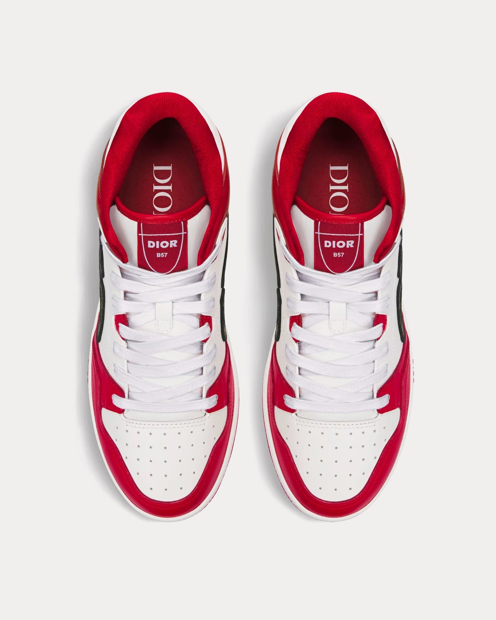Baskets mi-hautes Dior B57 en cuir de veau lisse avec jacquard Dior Oblique rouge/blanc