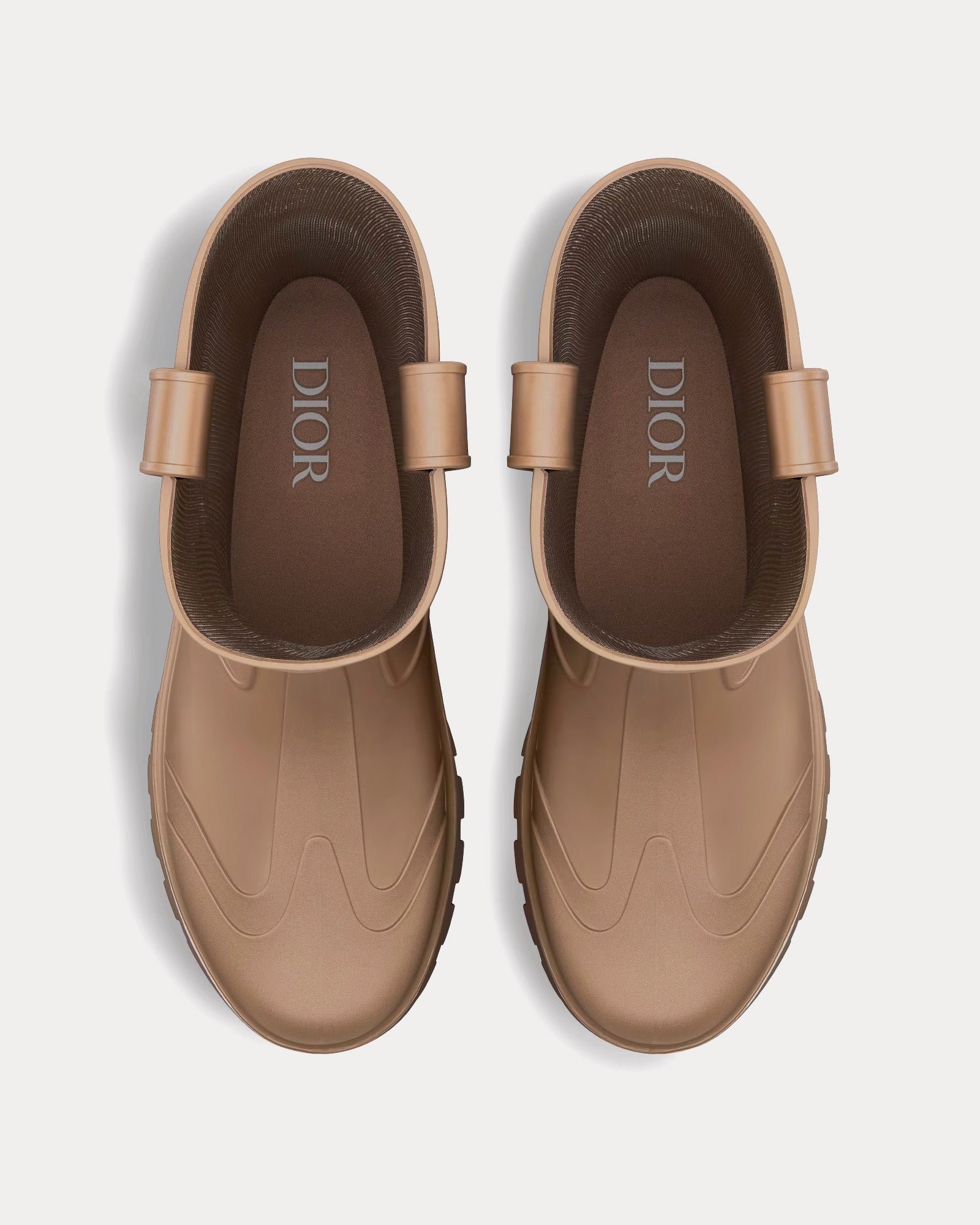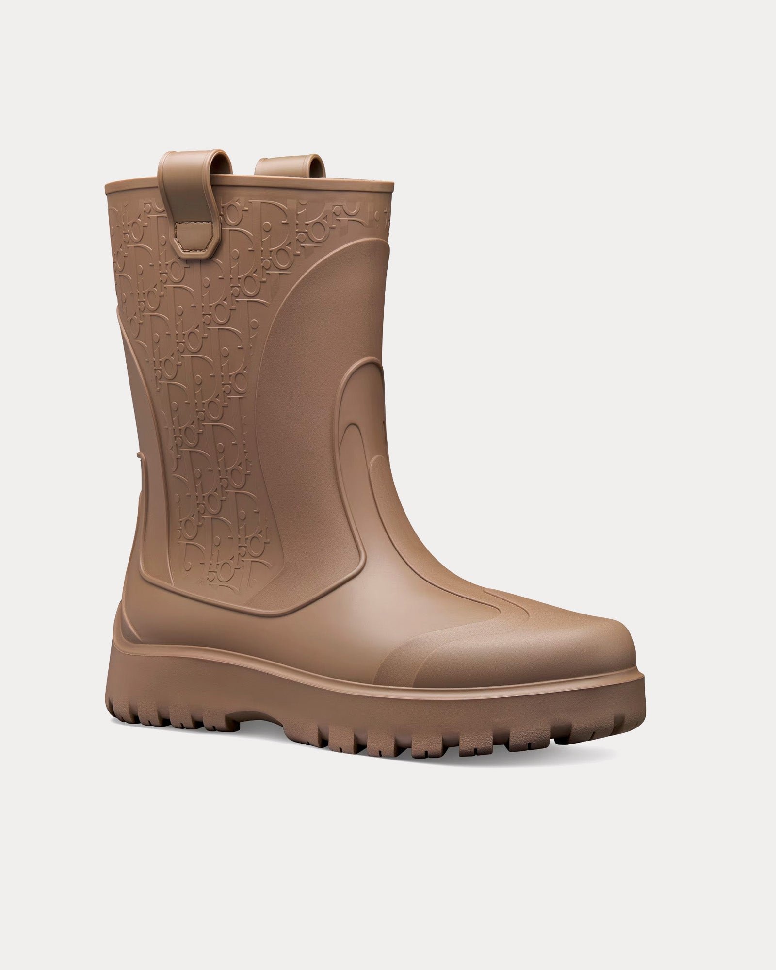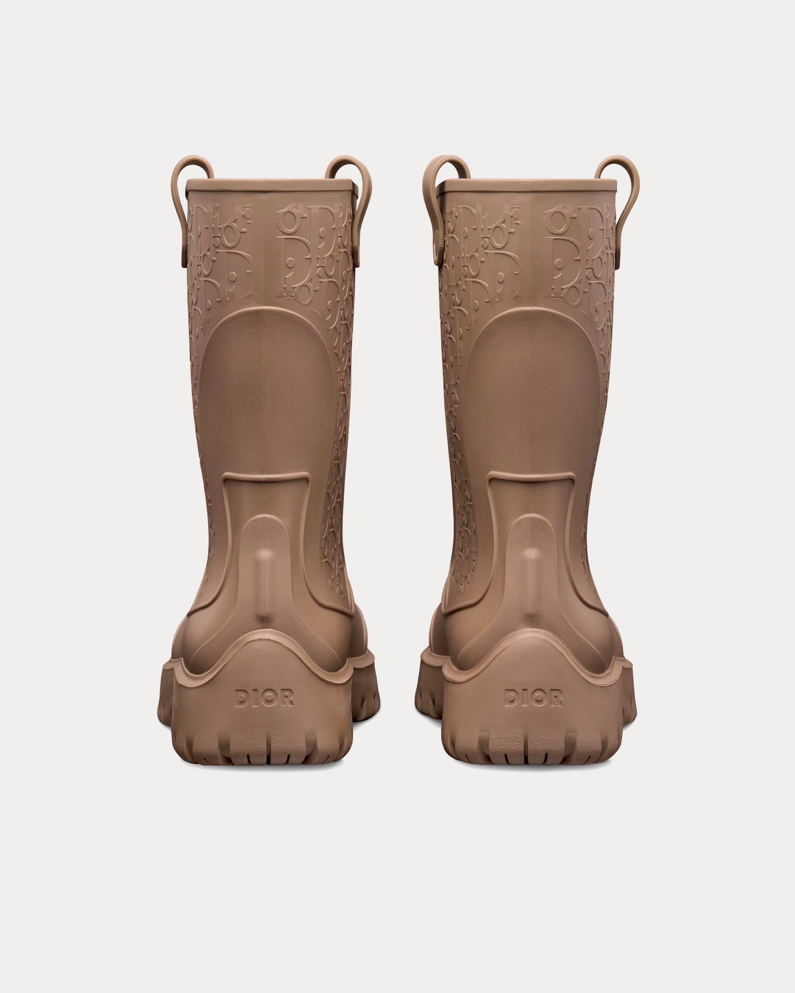 Bottes de pluie Dior Garden en caoutchouc marron avec motif Dior Oblique