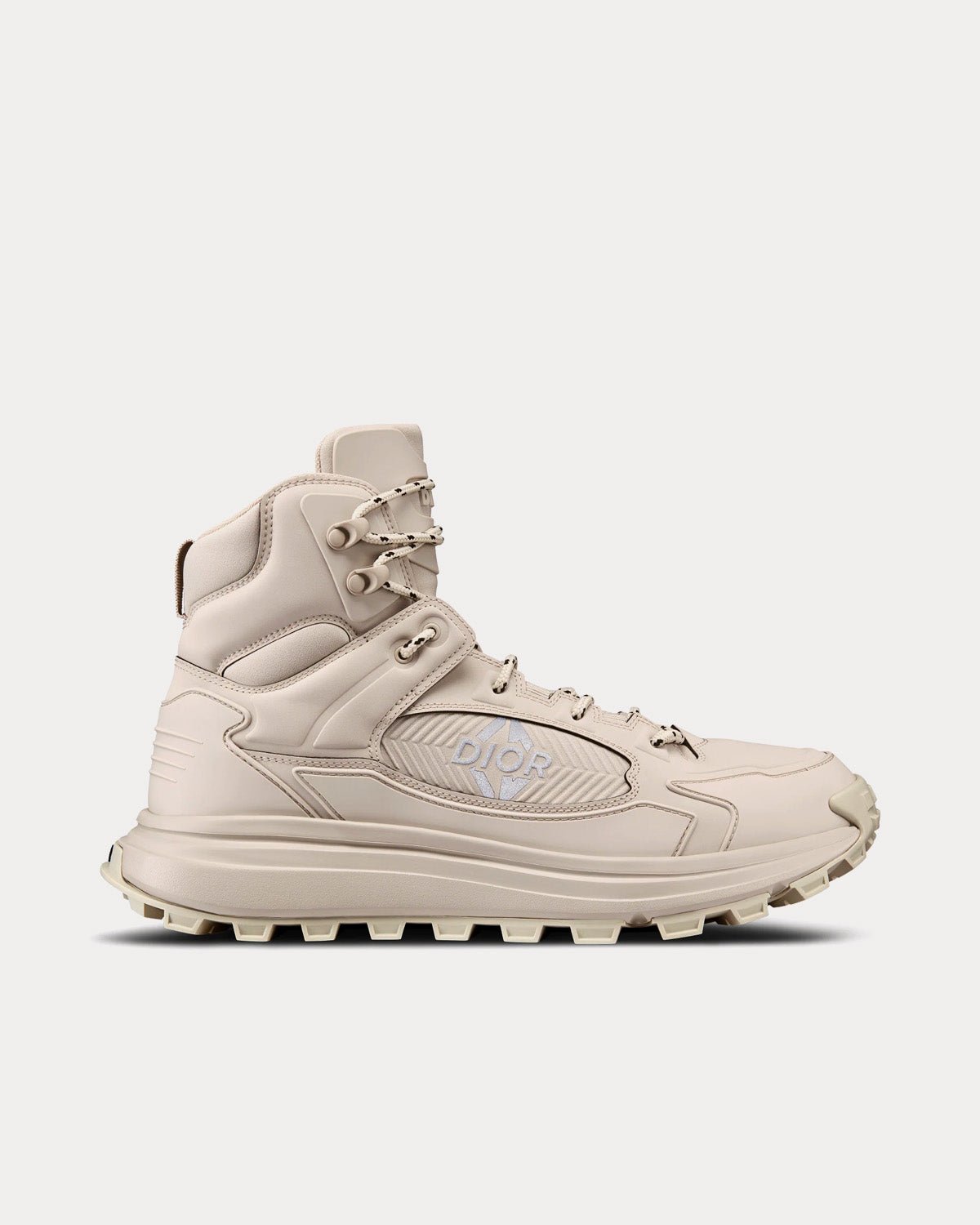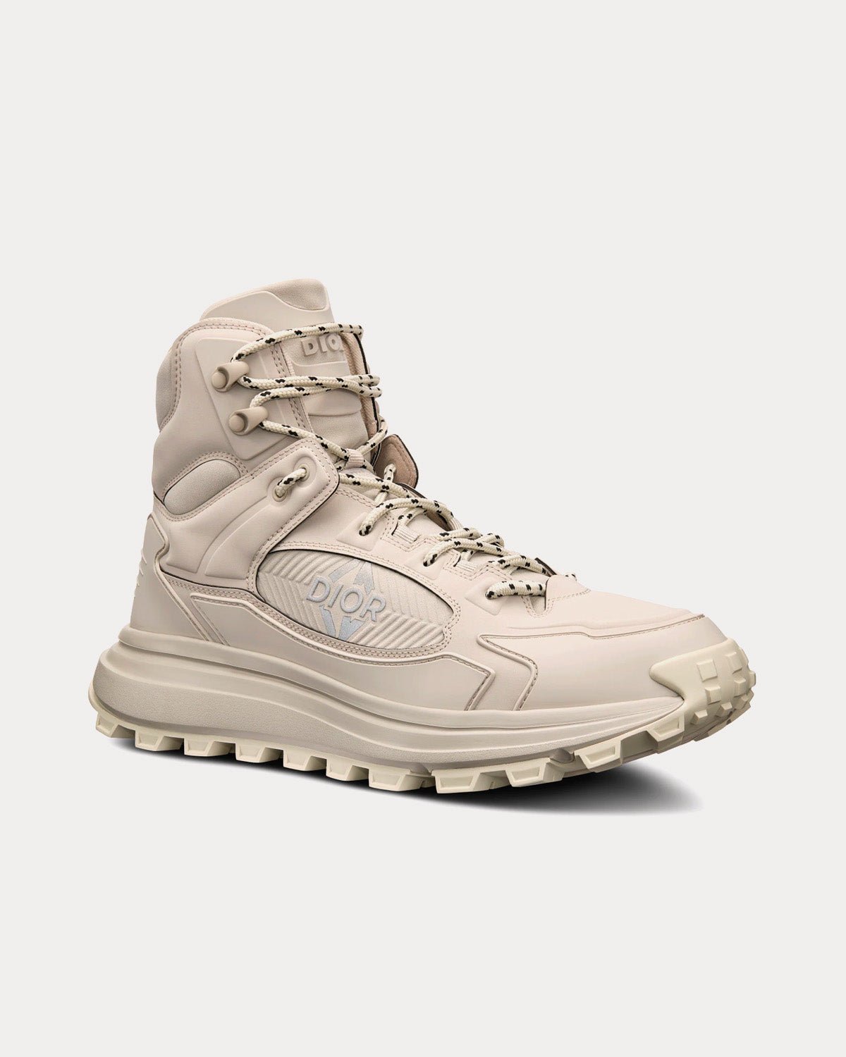 Nouveauté de la saison, la bottine Dior Snow met en valeur la technicité et les codes couture de la collection Dior Ski Capsule. Confectionnée en tissu technique noir garantissant une imperméabilité jusqu’à quatre heures, elle est rehaussée de détails emblématiques, dont la signature Dior CD Diamond réfléchissante sur le côté. La cheville et la languette matelassées garantissent un confort optimal, tandis que le laçage bicolore accentue l’esthétique montagnarde du modèle. Dotée d’une semelle épaisse texturée offrant une excellente adhérence sur la neige, cette bottine s’associera facilement aux autres créations de la collection Dior Ski Capsule.