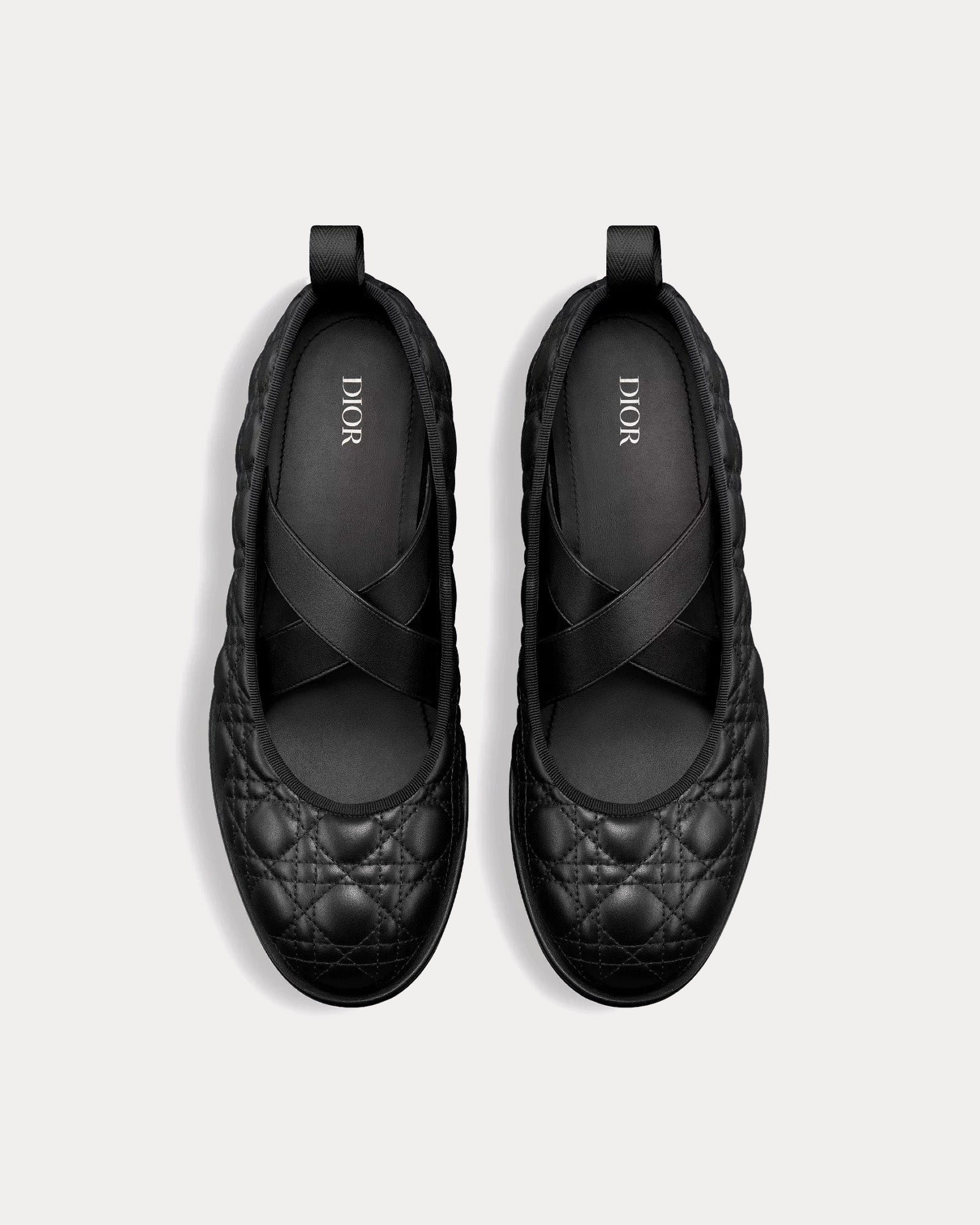 Sandales plates Dior Tendu Ballet Flat en cuir de veau Kumo Cannage noires