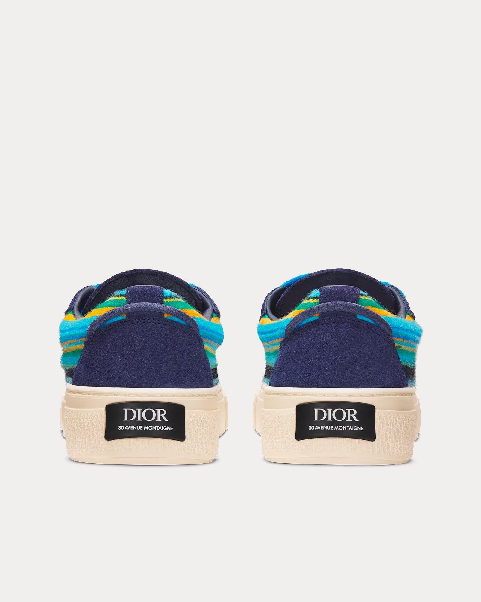 Les baskets basses pour homme Dior B33 en Mohair Multicolore Bleu et Suédine Bleu Marine sont numérotées et limitées avec un jumeau numérique et arborent une nouvelle matière en mohair brossé au toucher ultra-doux et aux couleurs pop superposées. Rehaussées d’empiècements en suède bleu marine, elles se distinguent par une languette matelassée révélant la signature Dior Tears brodée et un jeu de larges lacets en mohair turquoise avec œillets en laiton finition bleu marine mat. La semelle en caoutchouc couleur crème à motif Dior Oblique est ornée de la signature Dior 30 Avenue Montaigne à l’arrière. Cette sneaker apportera une touche contemporaine à tous vos looks décontractés.
