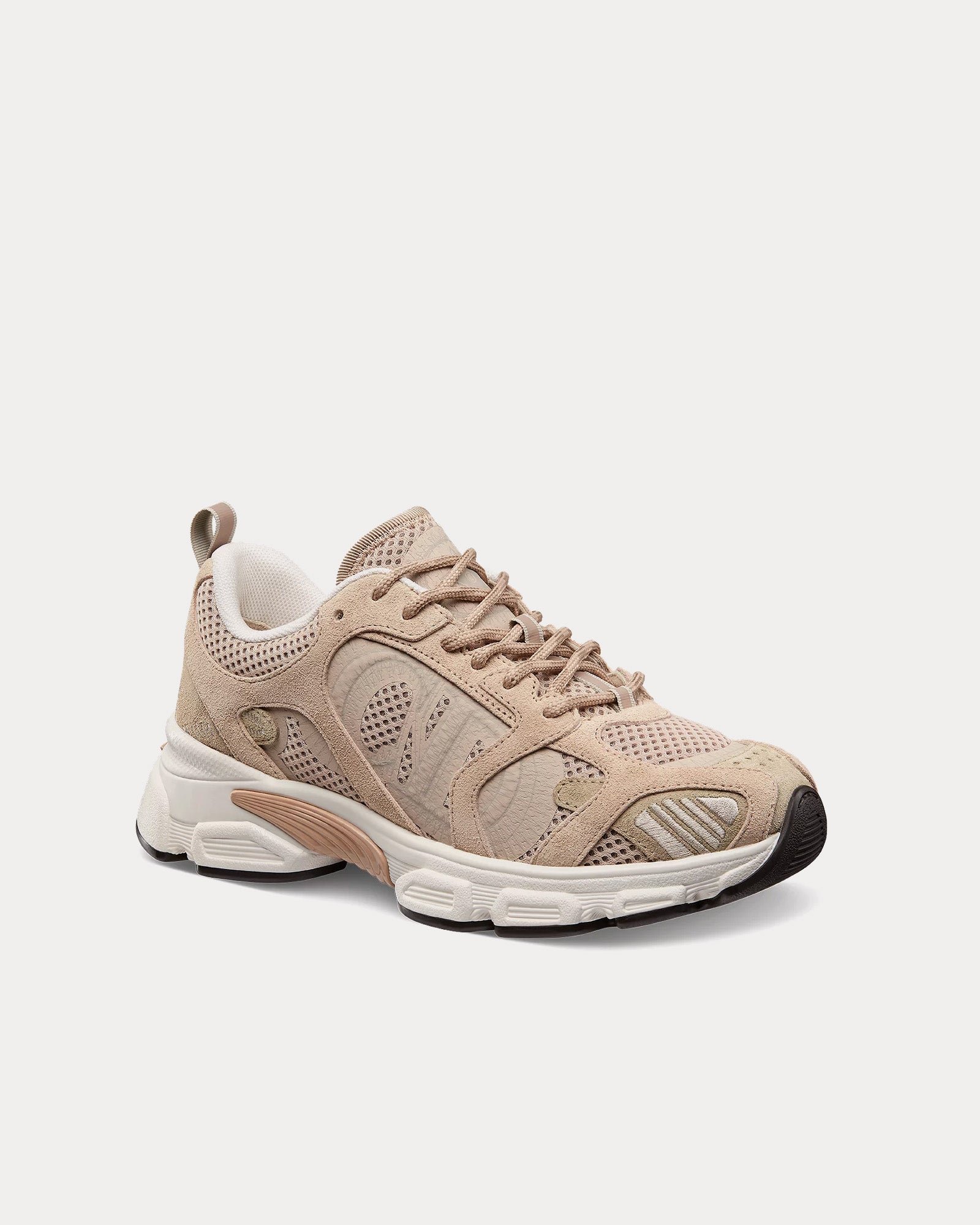 Les baskets basses pour femme Dior Chrono en maille nude et cuir de veau velours réinventent la chaussure de course classique à travers le prisme de la haute couture. Associant des éléments techniques performants aux détails couture emblématiques de la Maison, la Chrono est à la fois élégante et fonctionnelle.