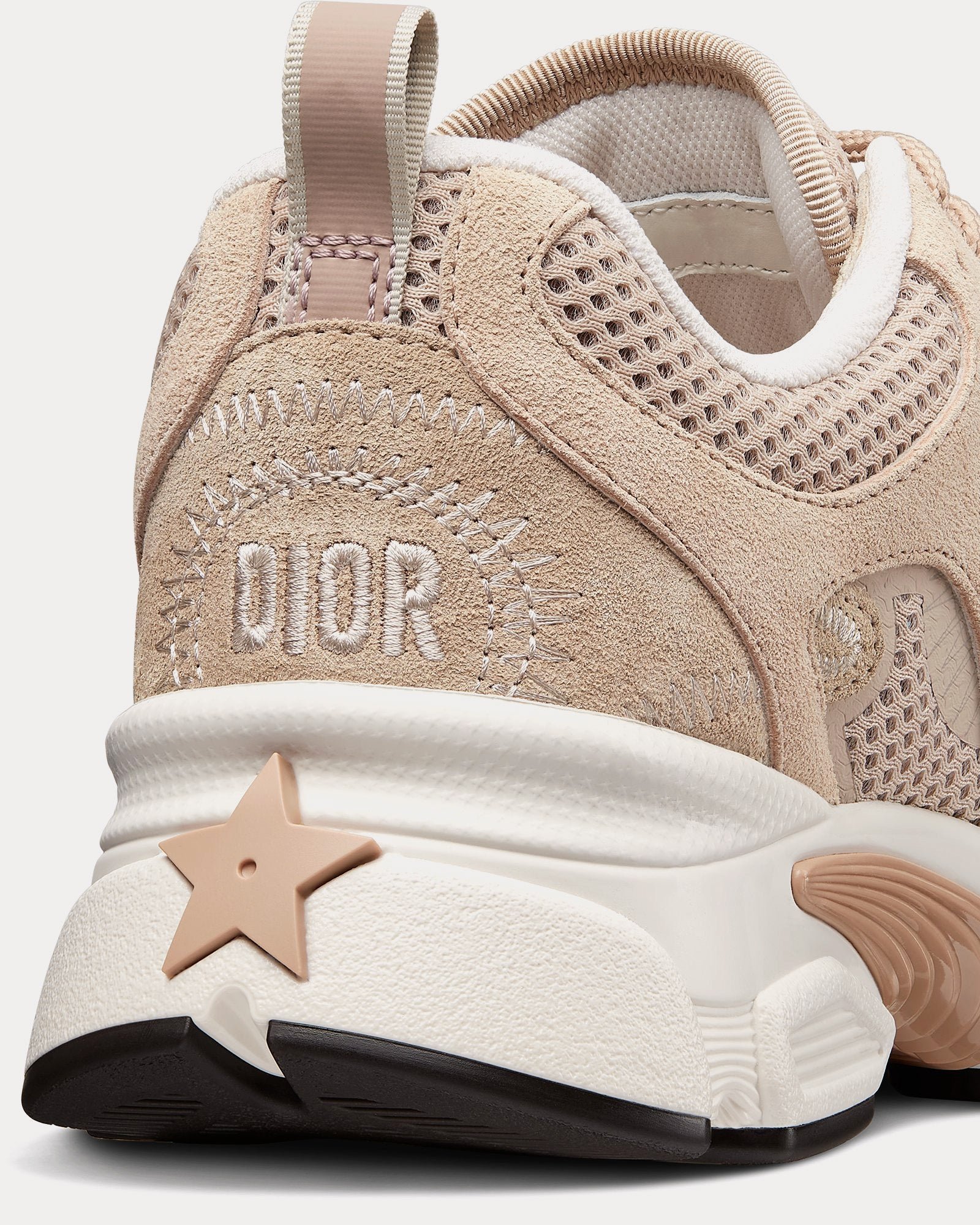 Les détails emblématiques incluent la signature CD sur les côtés, un patch étoile sur la languette et une subtile signature Dior au talon. Les lacets bicolores ajoutent dimension et contraste, tandis que la semelle ultra-légère en EVA, ornée de l’étoile porte-bonheur Christian Dior, offre confort et souplesse pour une utilisation quotidienne.