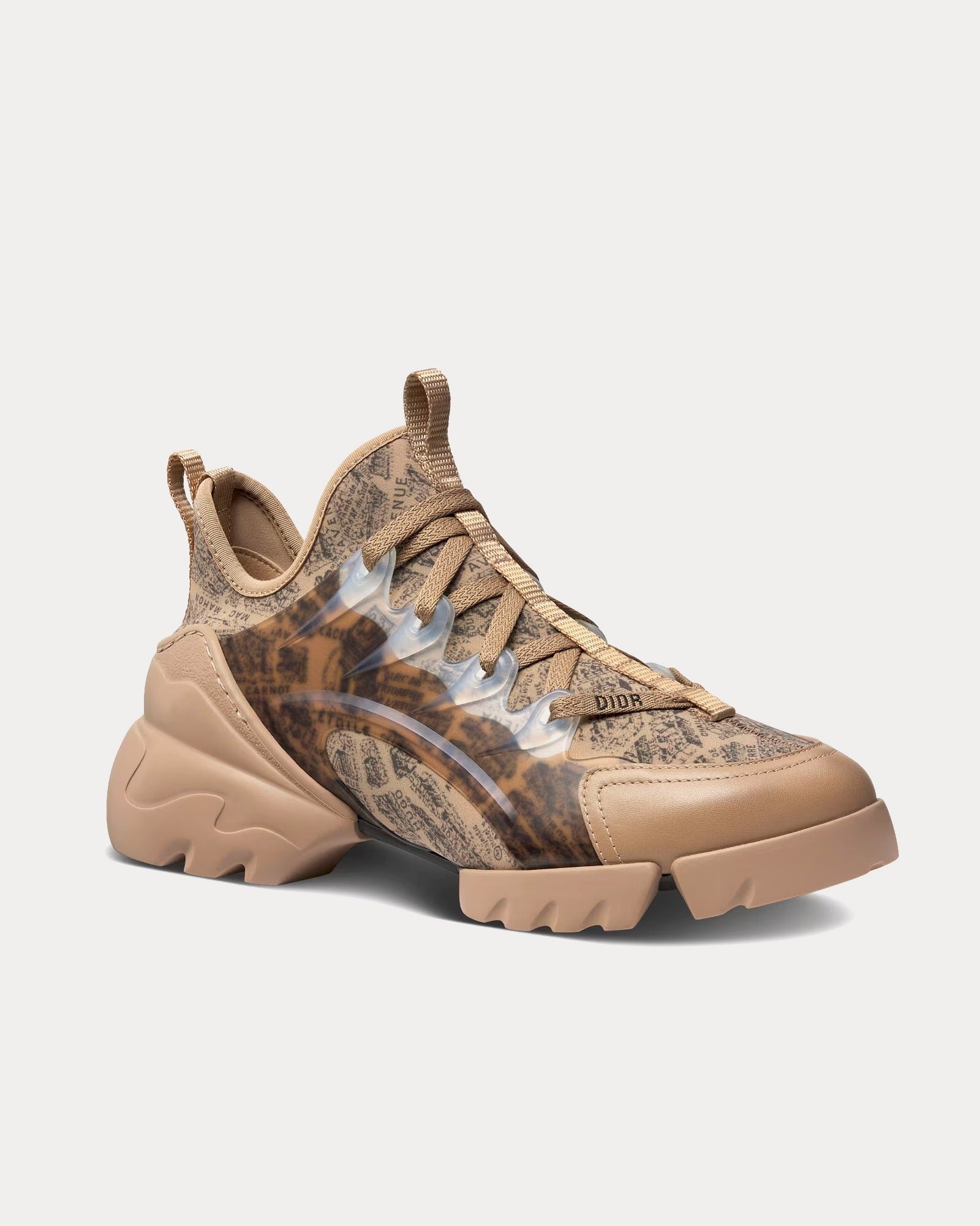 Baskets basses Dior D-Connect en tissu technique beige et noir à imprimé Plan de Paris