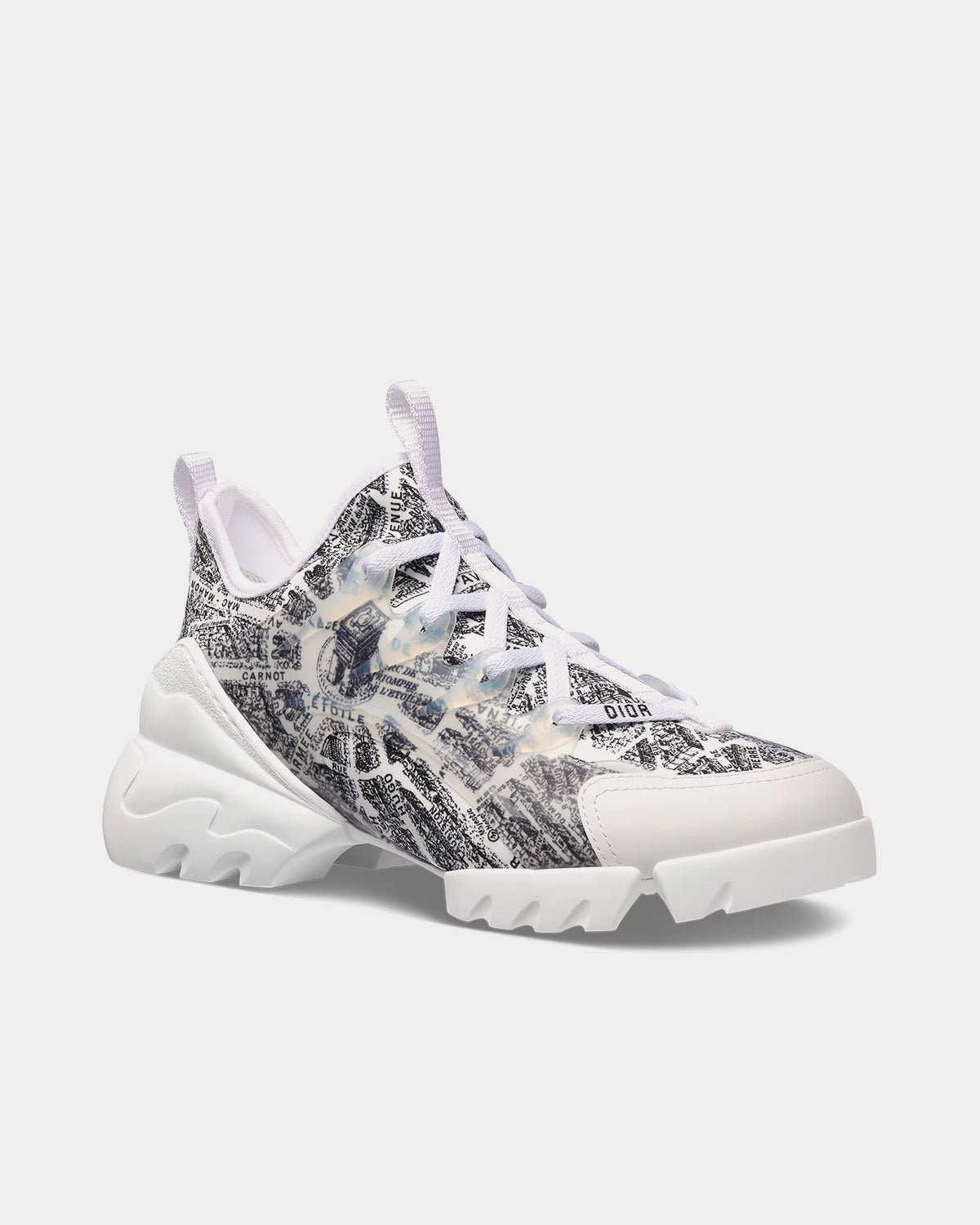 Baskets basses Dior D-Connect en tissu technique noir et blanc à imprimé Plan de Paris