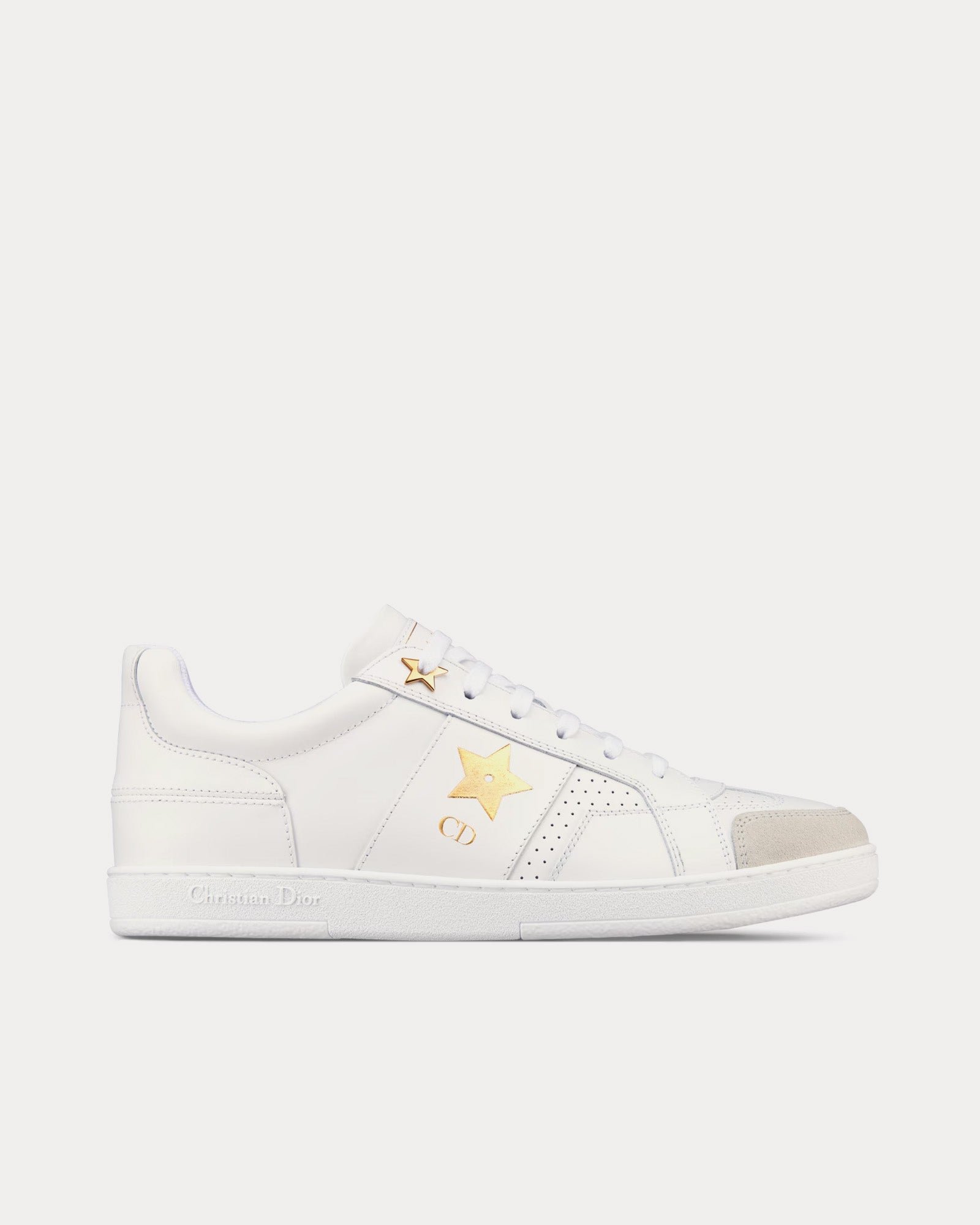 Baskets basses Dior Star en cuir de veau et daim blanc/doré