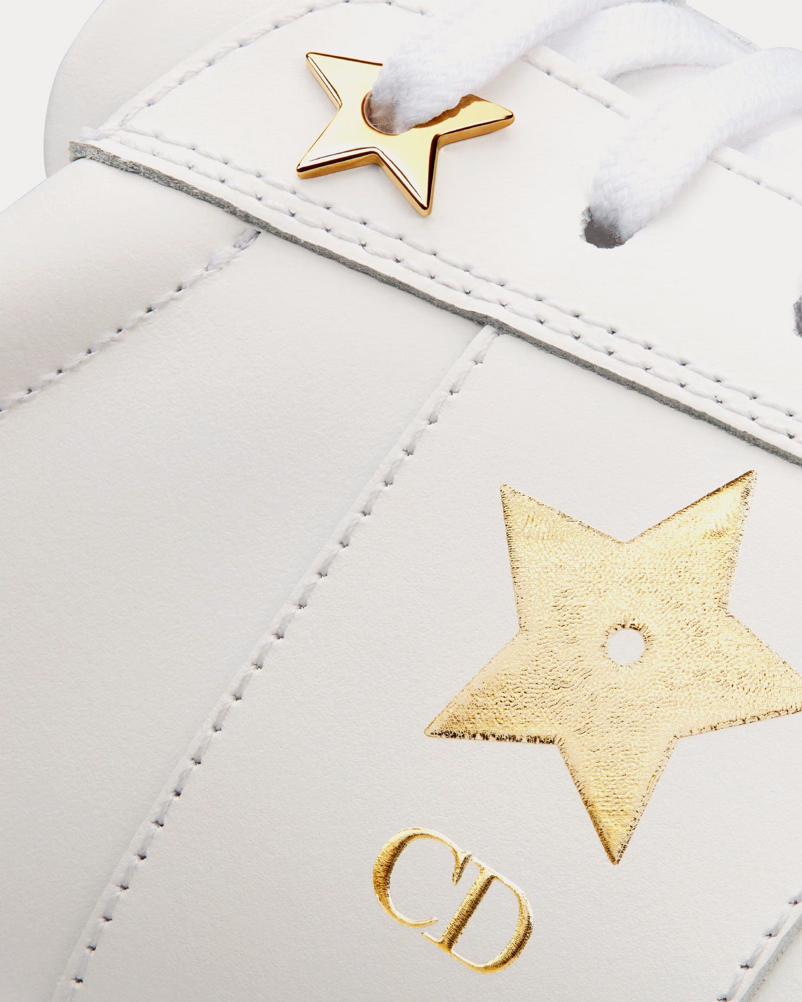 Les baskets basses pour femme Dior Dior Star en blanc et or présentent des signatures sur la languette, la semelle et les lacets, ainsi qu’une plateforme en EVA avec une étoile, le symbole porte-bonheur de Christian Dior. Fabriquées en Italie.