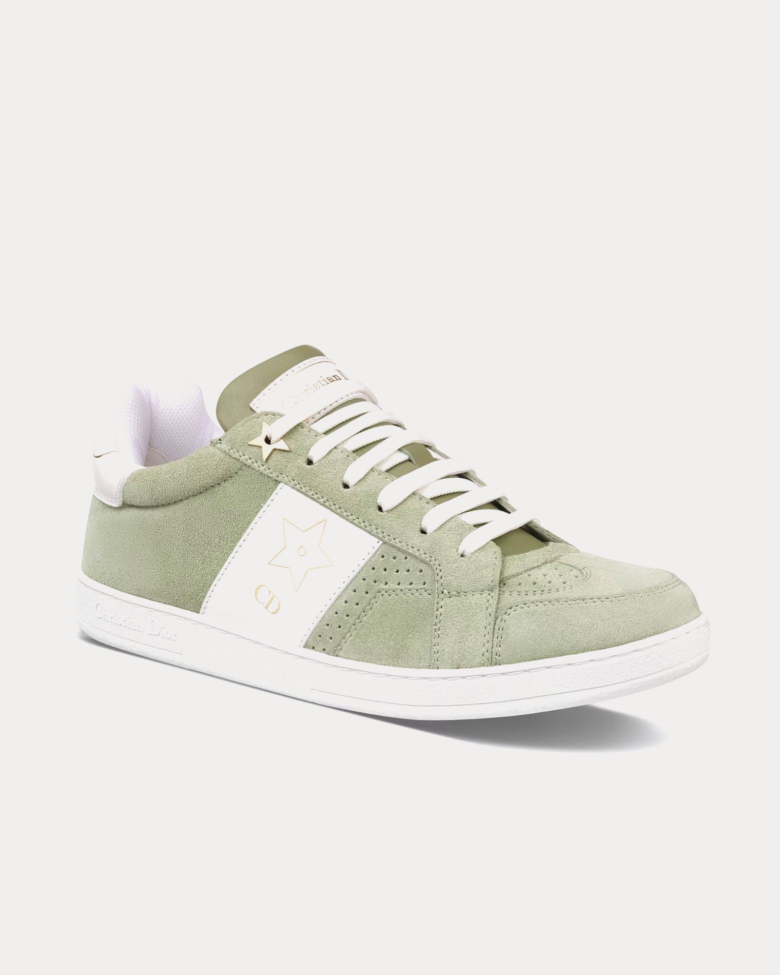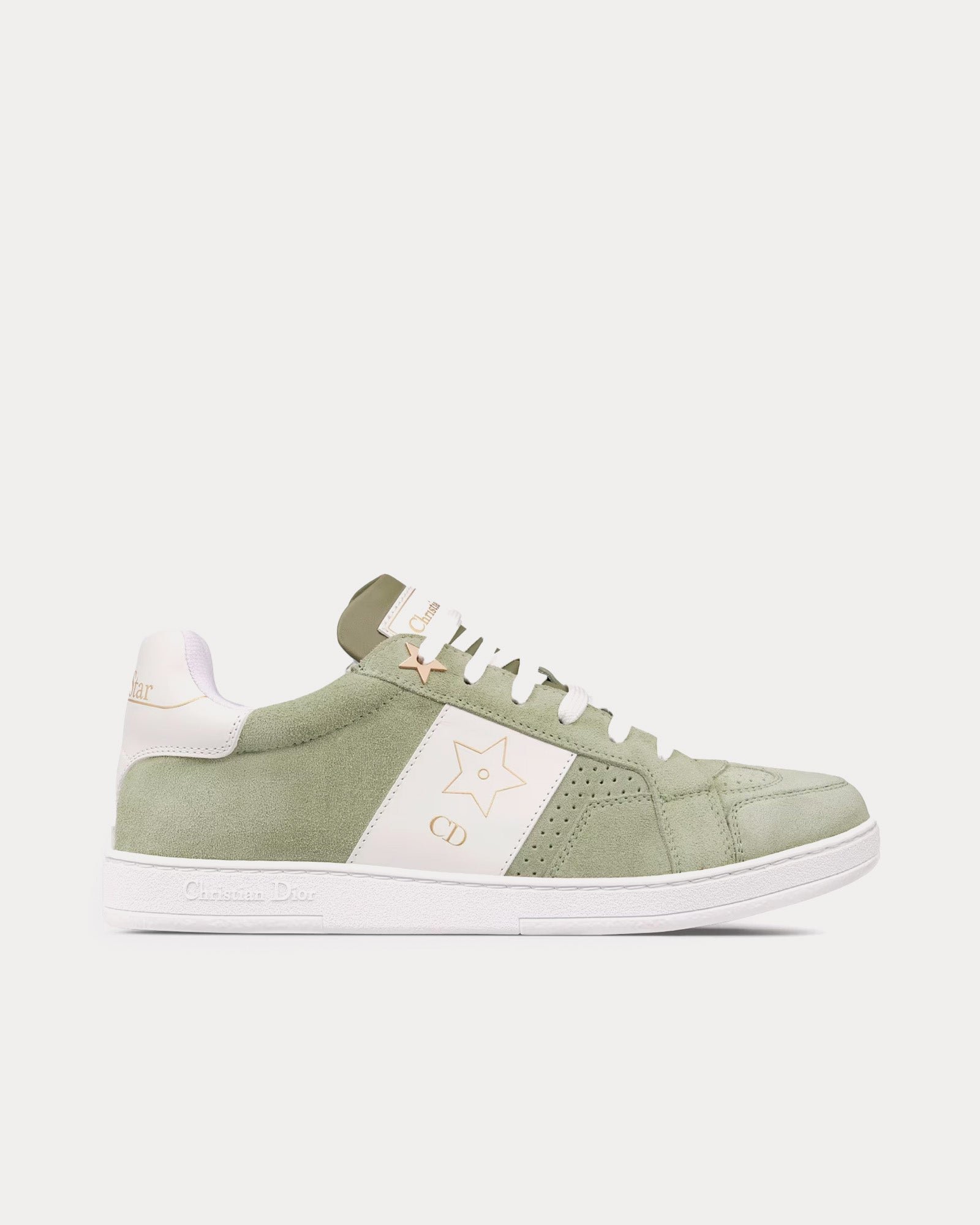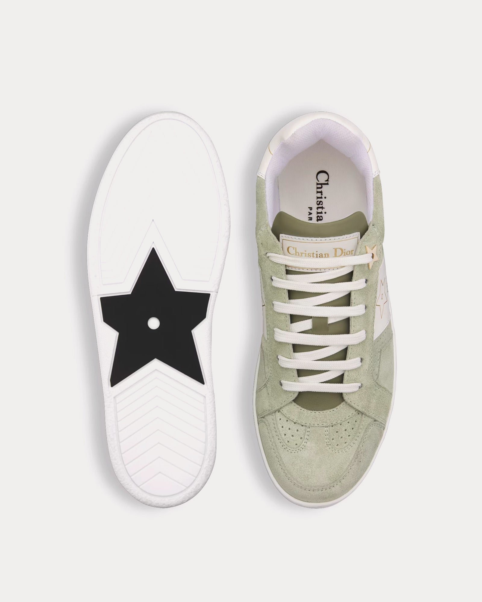 Baskets basses Dior Star en daim et cuir de veau vert peyote / blanc