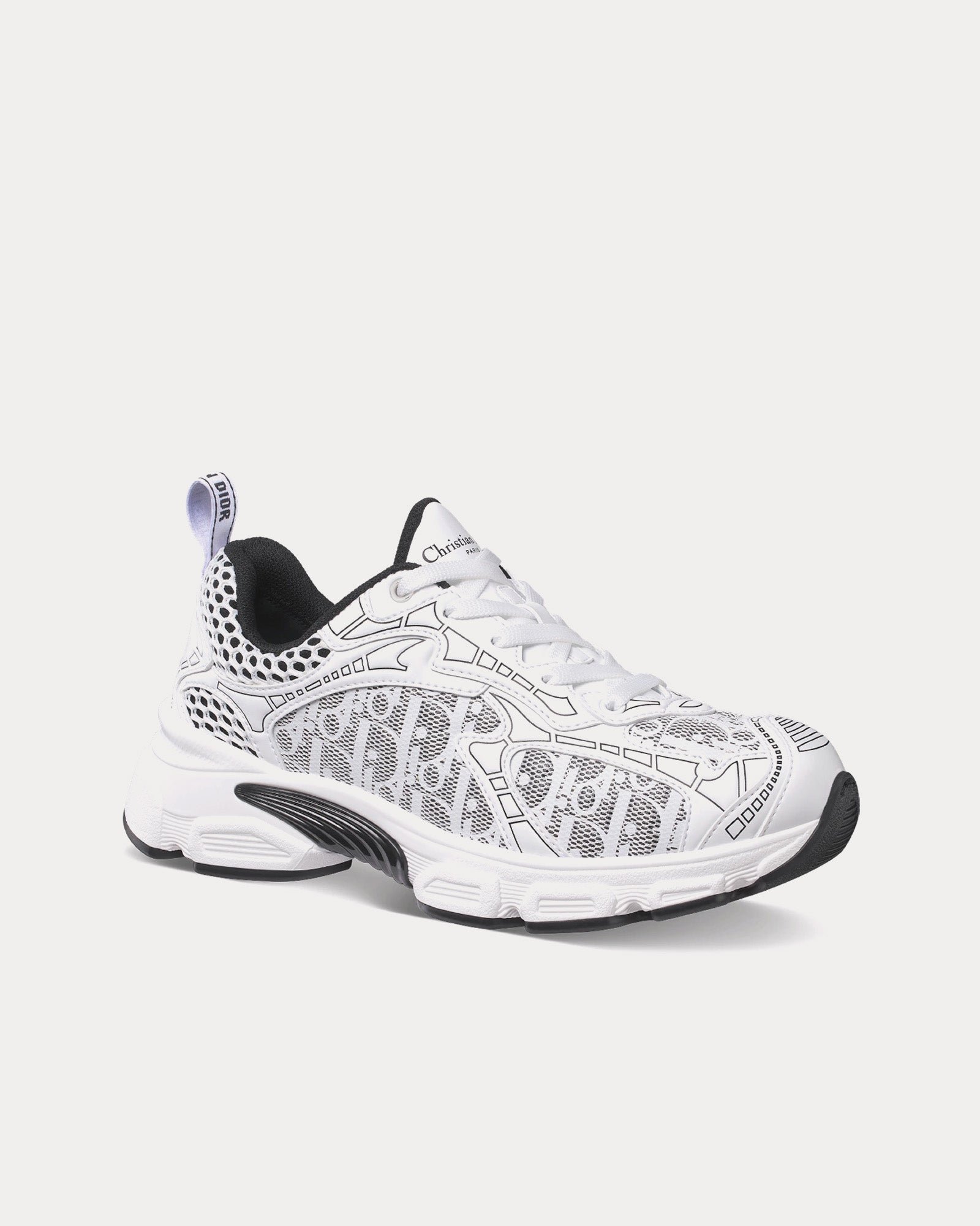 Baskets basses Dior Vibe en mesh blanc imprimé motif Dior Oblique et empiècements effet cuir blanc et noir