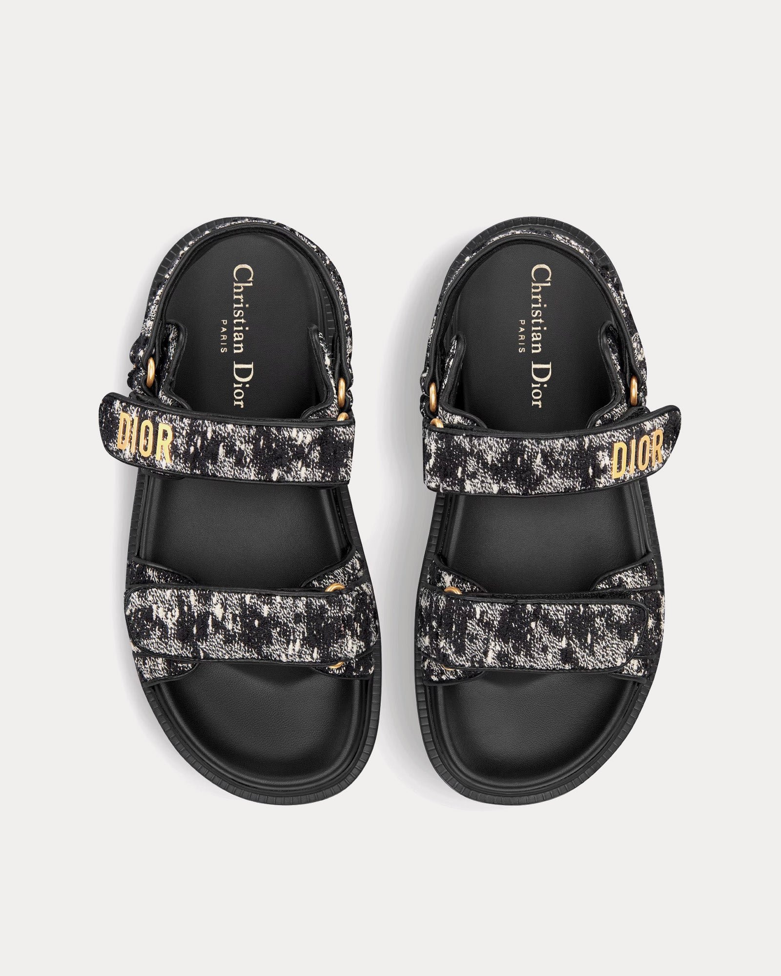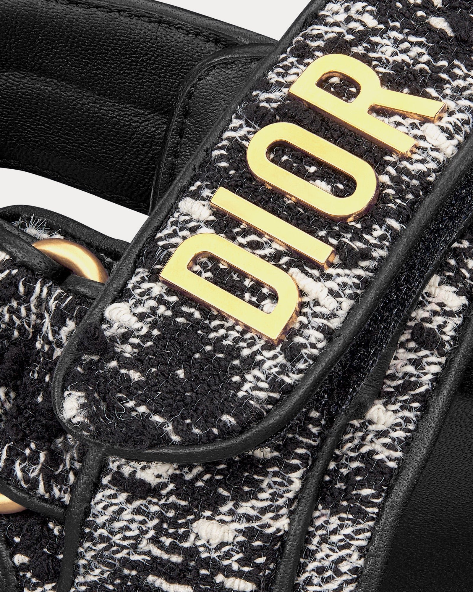 Sandales Dior Dioract en tweed pied-de-poule noir et blanc