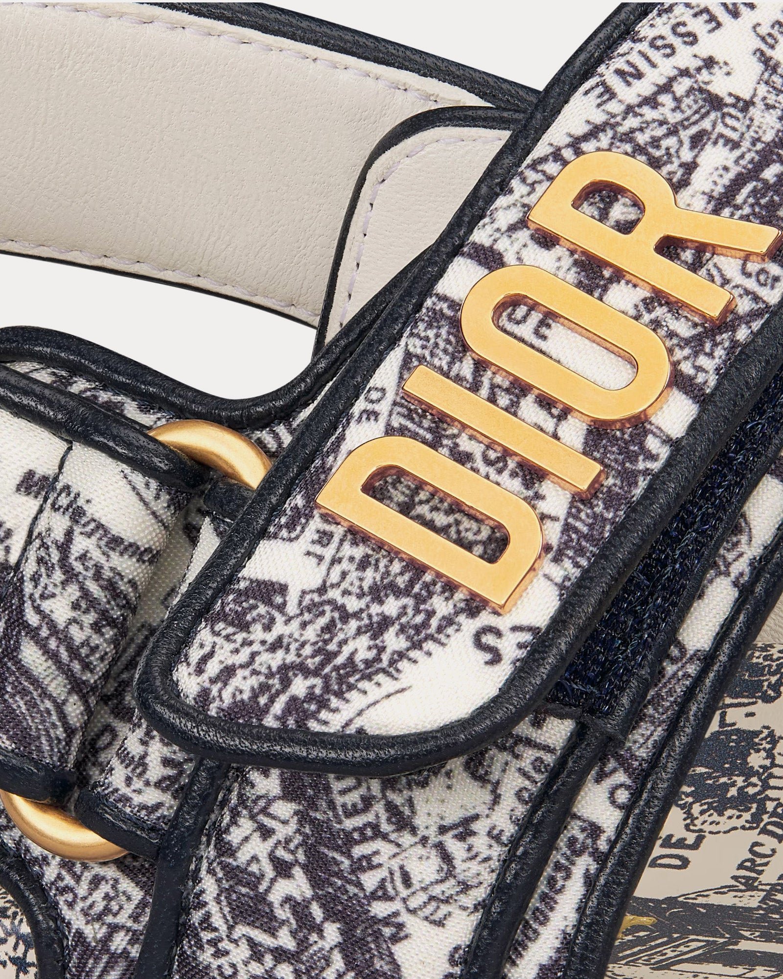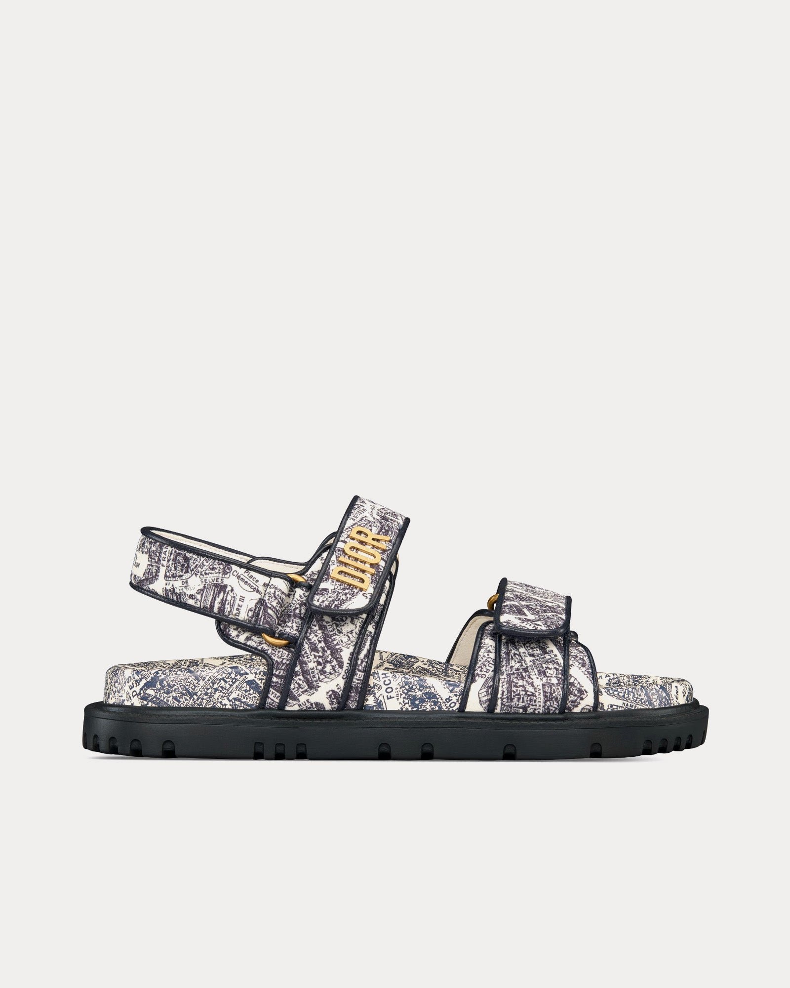 Sandales Dior Dioract en tissu technique blanc et bleu marine à imprimé Plan de Paris