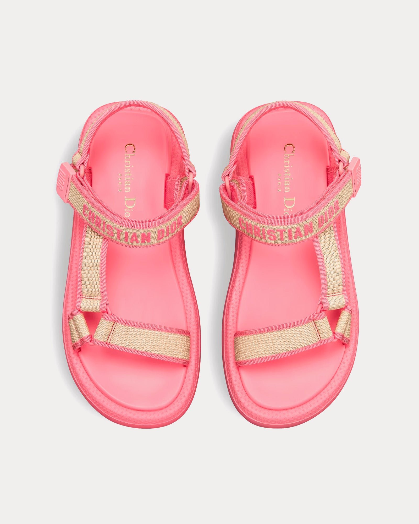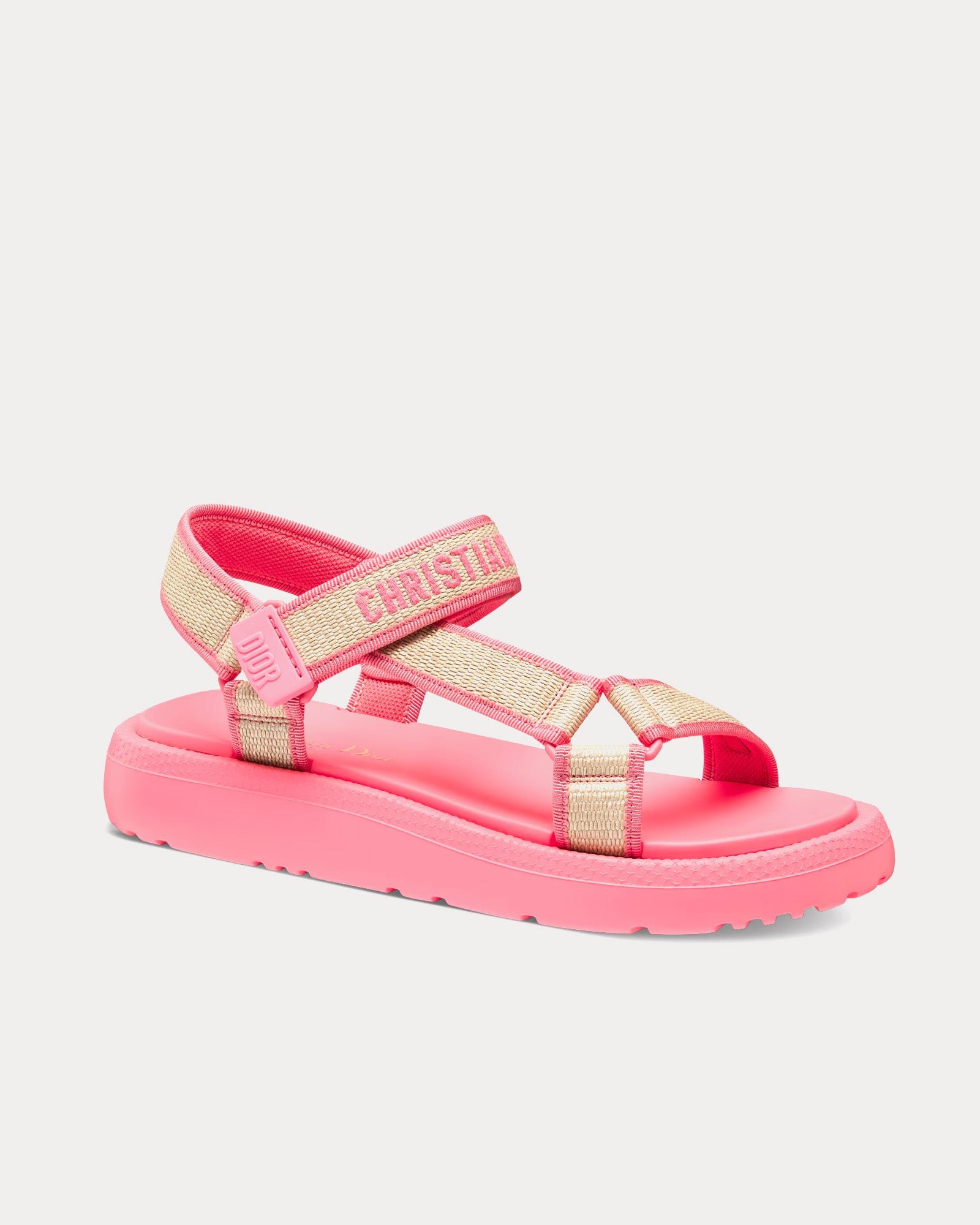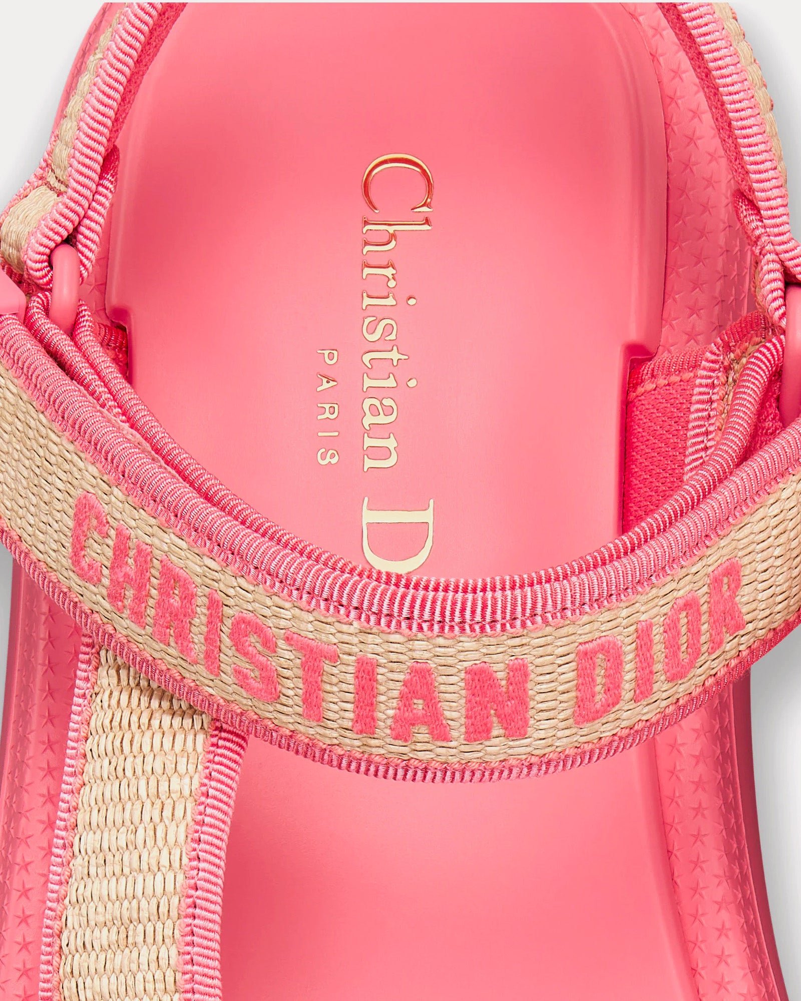 Sandales Dior Dioriviera D-Wave en raphia naturel et coton brodé rose bonbonSandales Dior Dioriviera D-Wave en raphia naturel et coton brodé rose bonbon