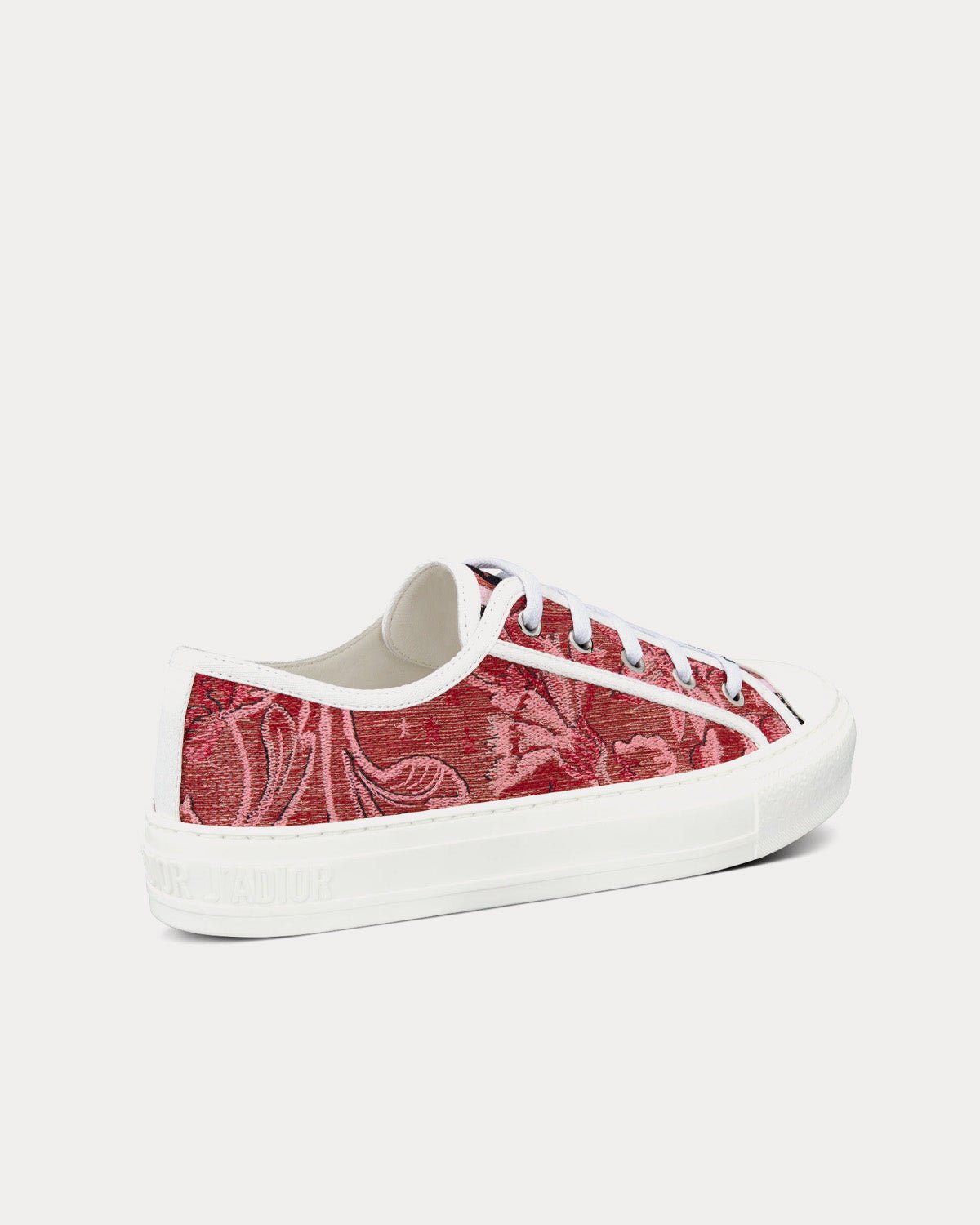 Baskets basses Dior Walk’n’Dior en coton brodé rouge cerise et fil métallisé doré