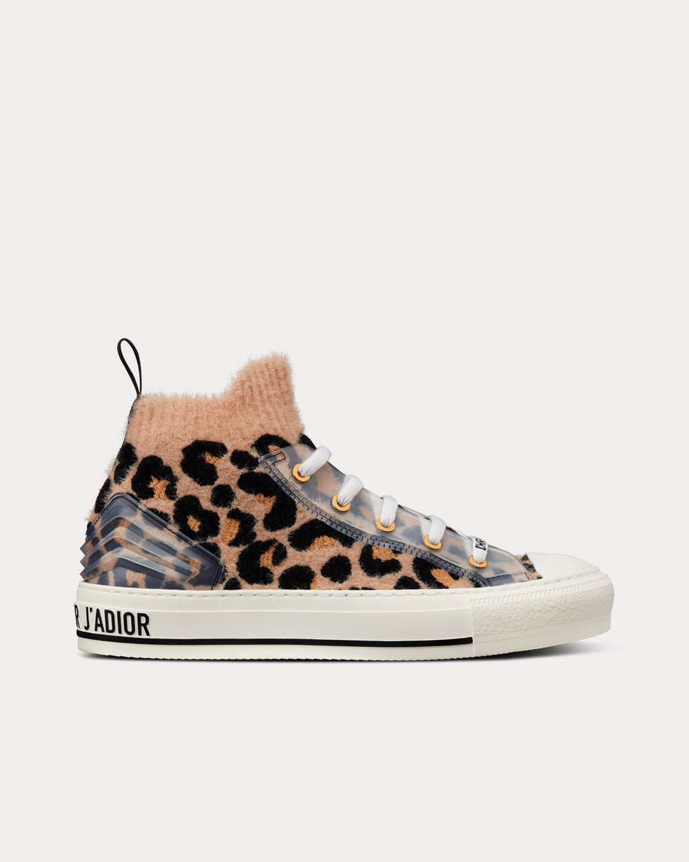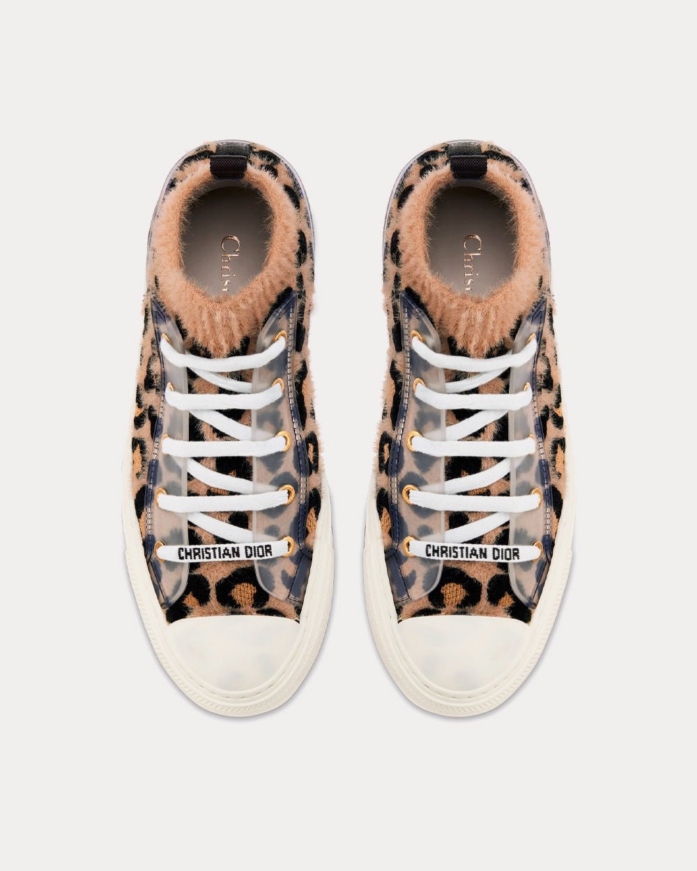 Baskets montantes Dior Walk’n’Dior en maille effet fourrure imprimée de motifs Mizza beiges multicolores