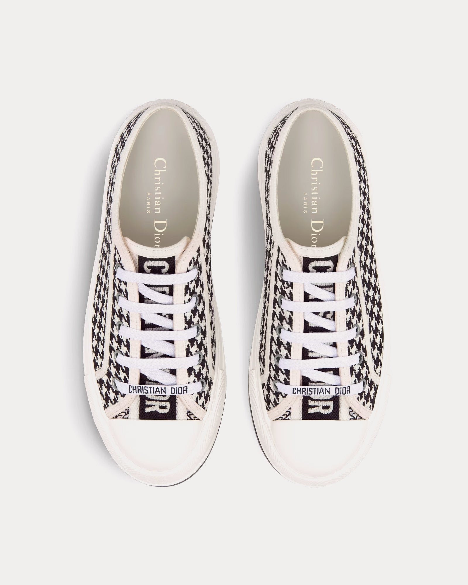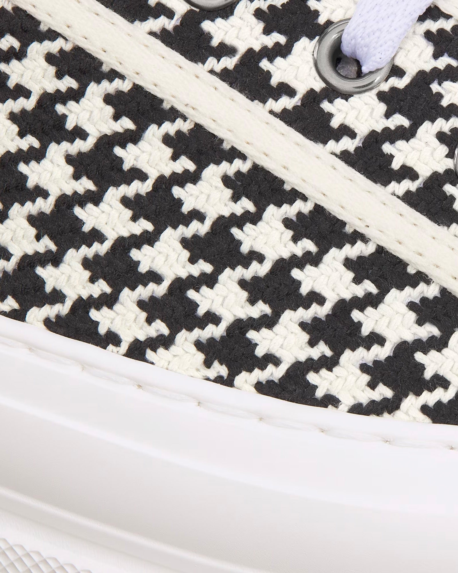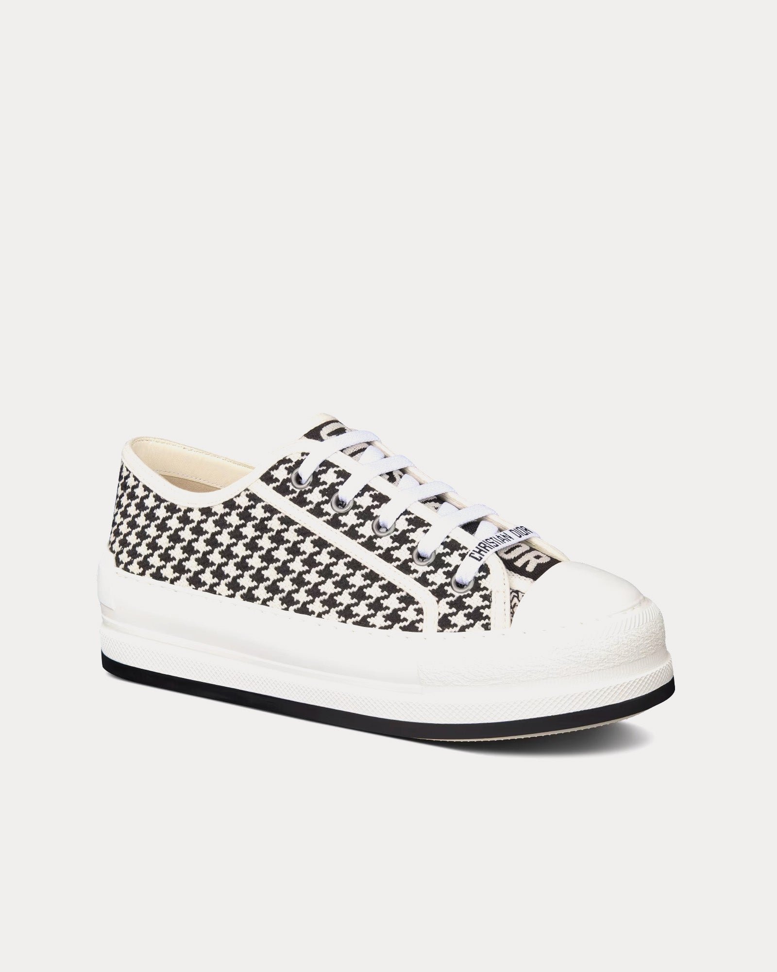 Baskets basses Dior Walk’n’Dior Platform en coton brodé pied-de-poule noir et blanc