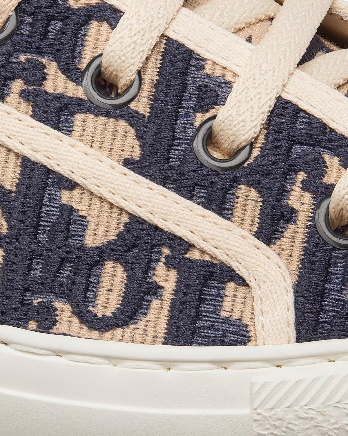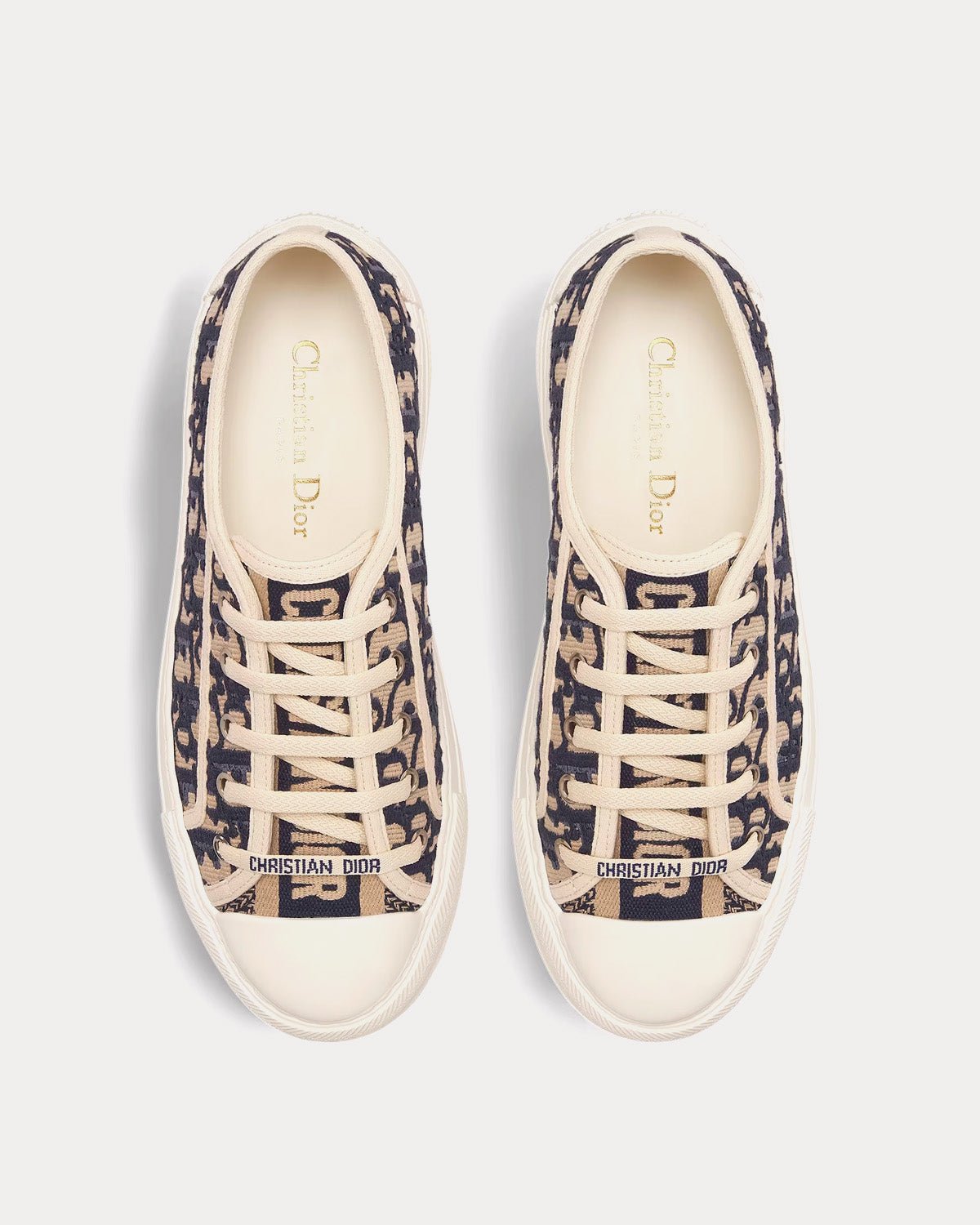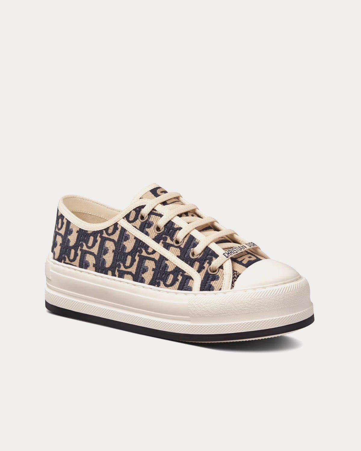 Baskets basses Dior Oblique bleu foncé en coton brodé à plateforme Walk’n’Dior