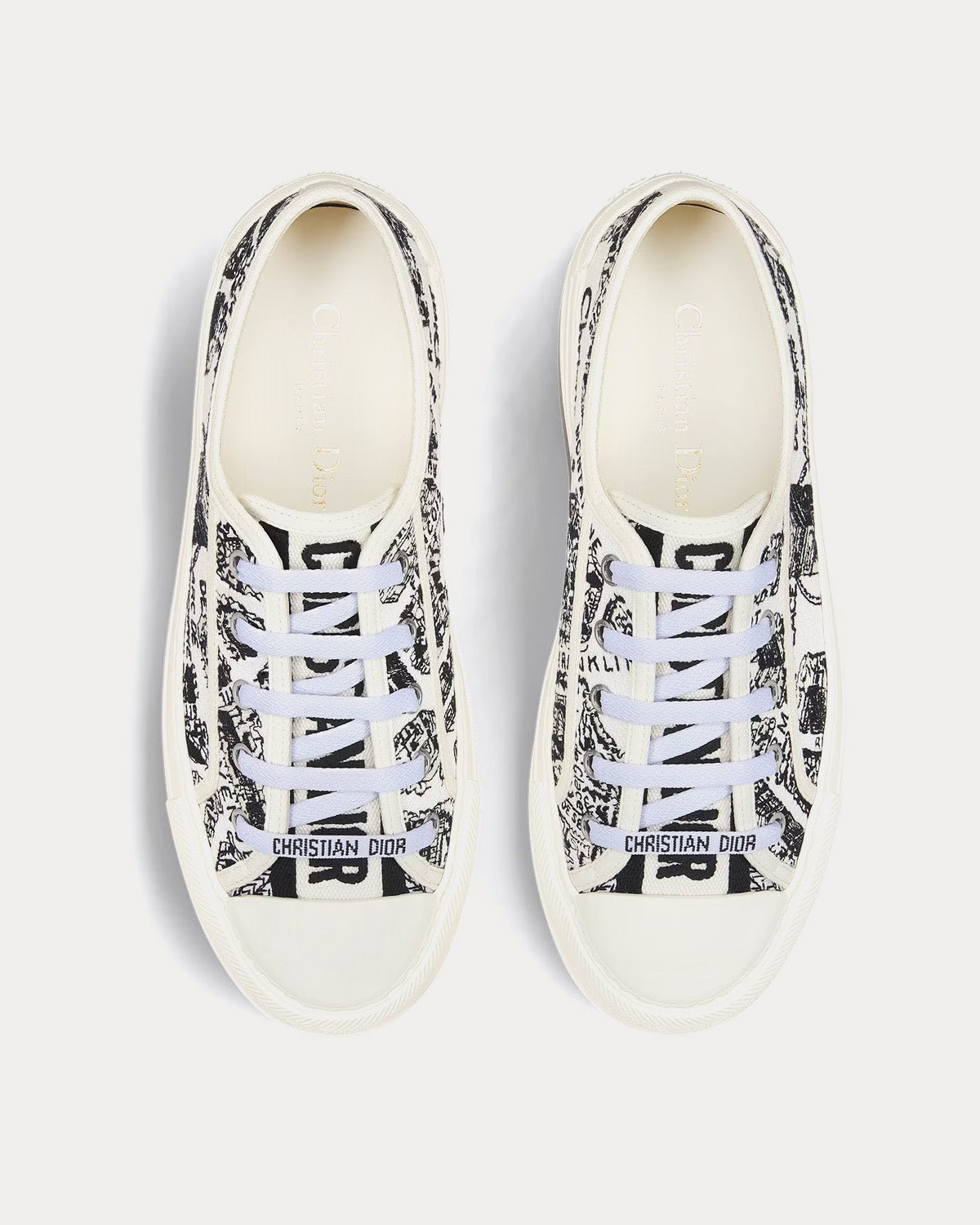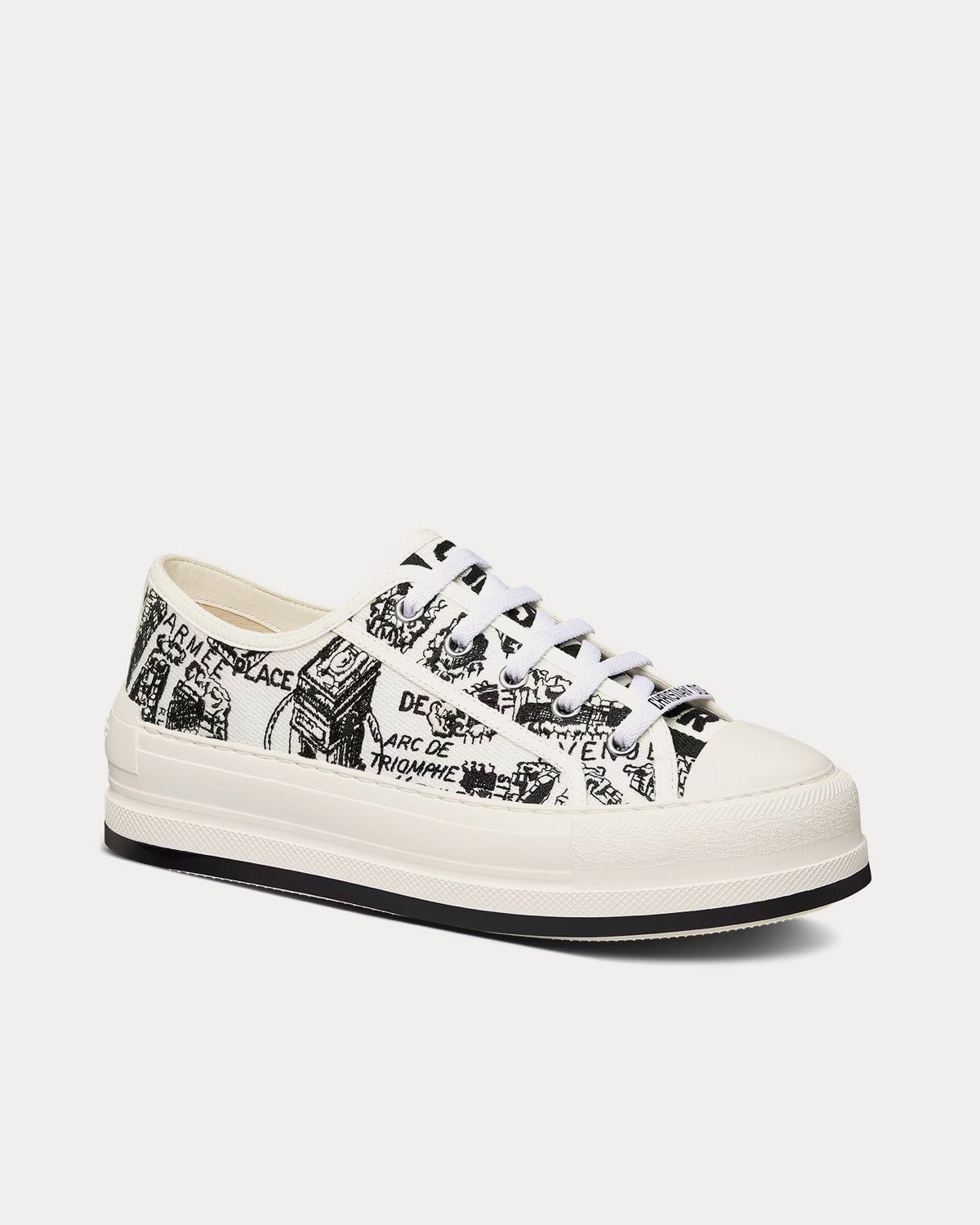 Baskets basses Dior Walk’n’Dior Platform en coton blanc et noir brodées du motif Plan de Paris