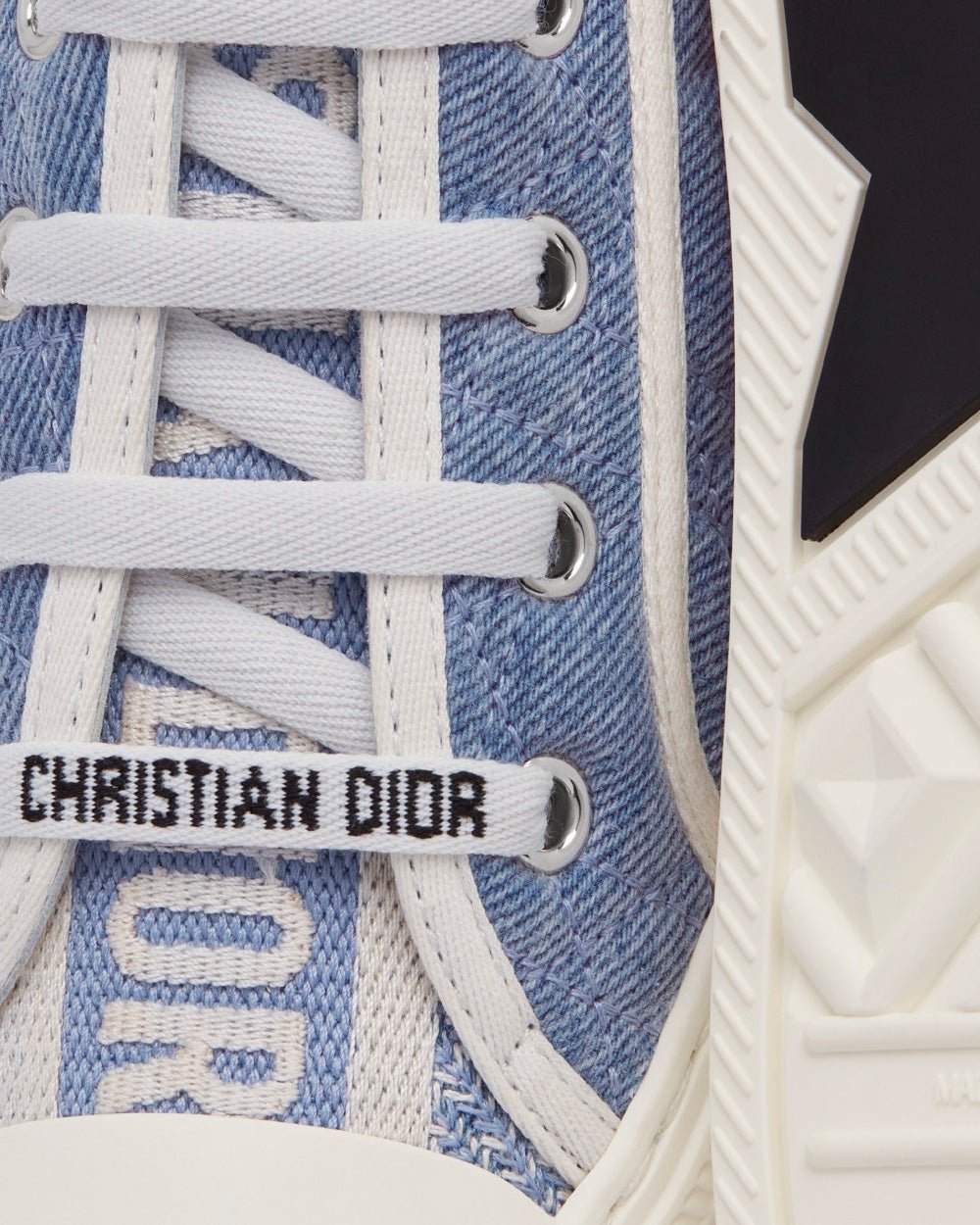 La sneaker Walk’n’Dior arbore un denim brodé représentant le motif Cannage bleu délavé emblématique. Son effet matelassé et son design décontracté affichent des signatures sur la languette, la semelle en caoutchouc et les lacets pour un look intemporel.