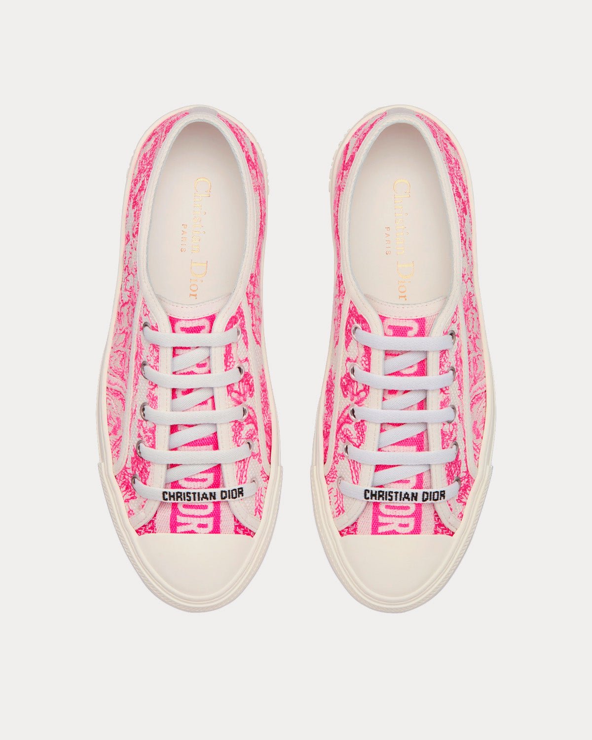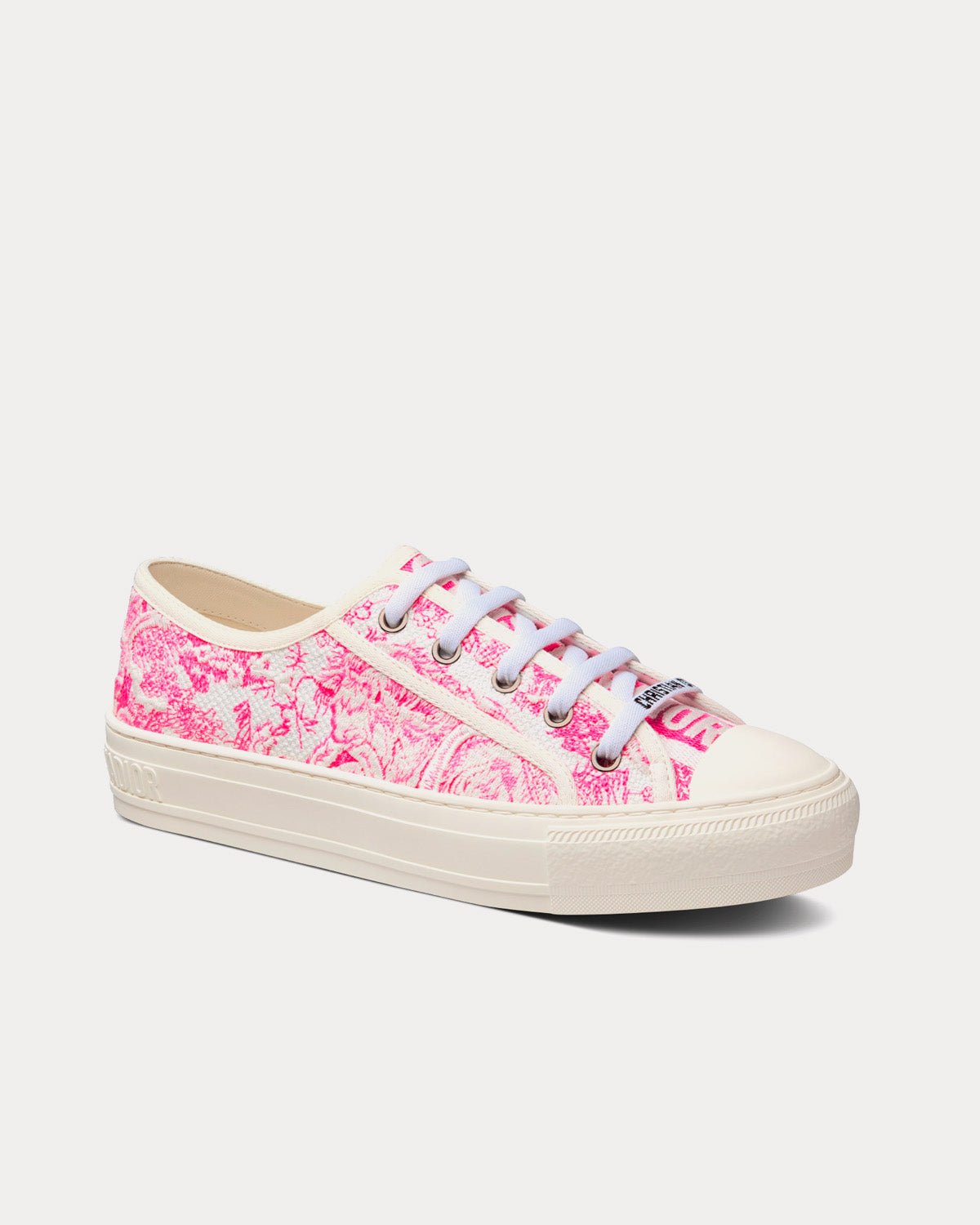 Baskets basses Dior Walk’n’Dior en coton brodé toile de Jouy rose vif