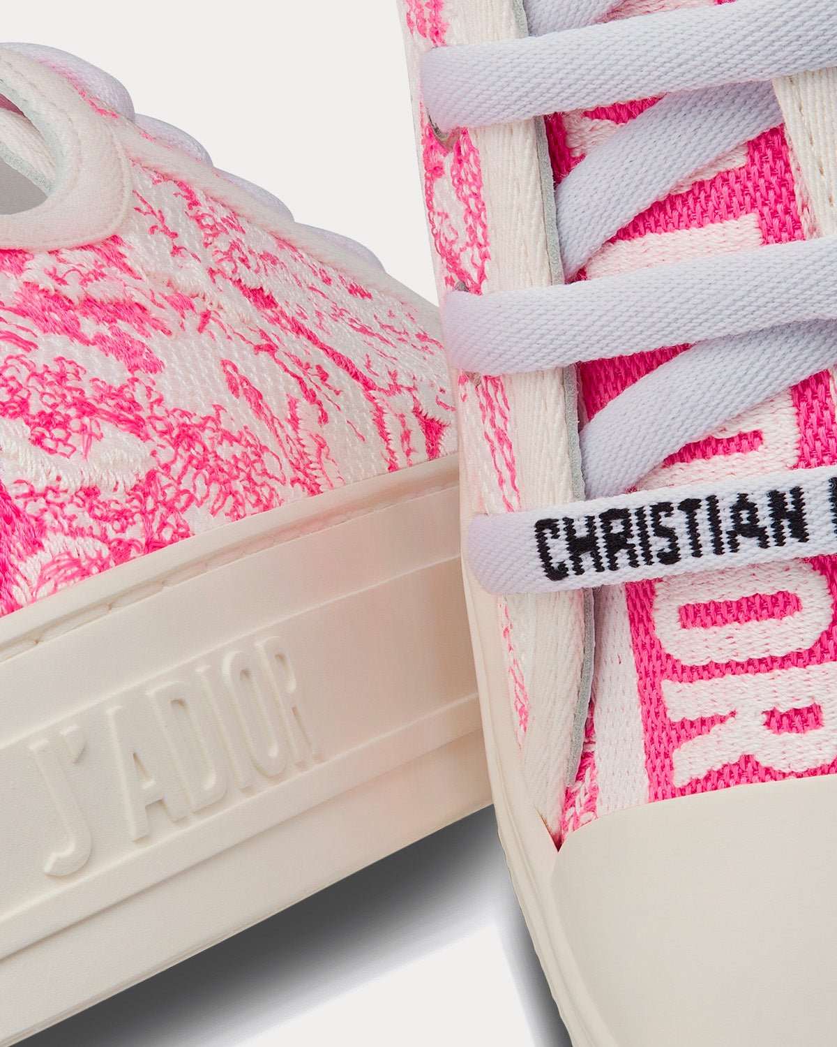 La sneaker Walk’n’Dior sublime la collection capsule Dioriviera avec l’emblématique motif Toile de Jouy rose vif. Confectionnée en coton brodé, elle affiche un style décontracté, sublimé par des signatures sur la languette, la semelle en caoutchouc et les lacets pour un look intemporel. Confortable, cette sneaker apportera une touche moderne à toutes vos tenues et s’associera parfaitement aux autres créations Dioriviera.
