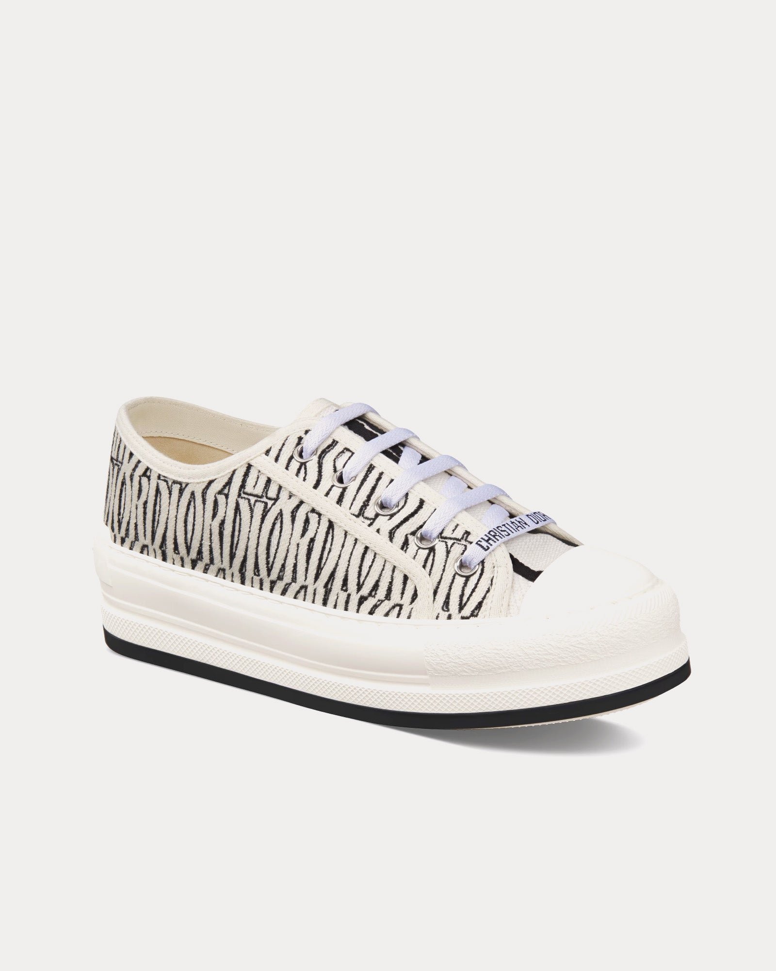 Baskets basses Dior Walk'n'Dior en coton brodé à plateforme et motif Miss Dior Allover blanc et noirBaskets basses Dior Walk’n’Dior en coton brodé à plateforme et motif Miss Dior Allover blanc et noir