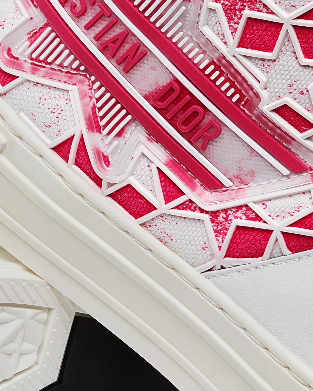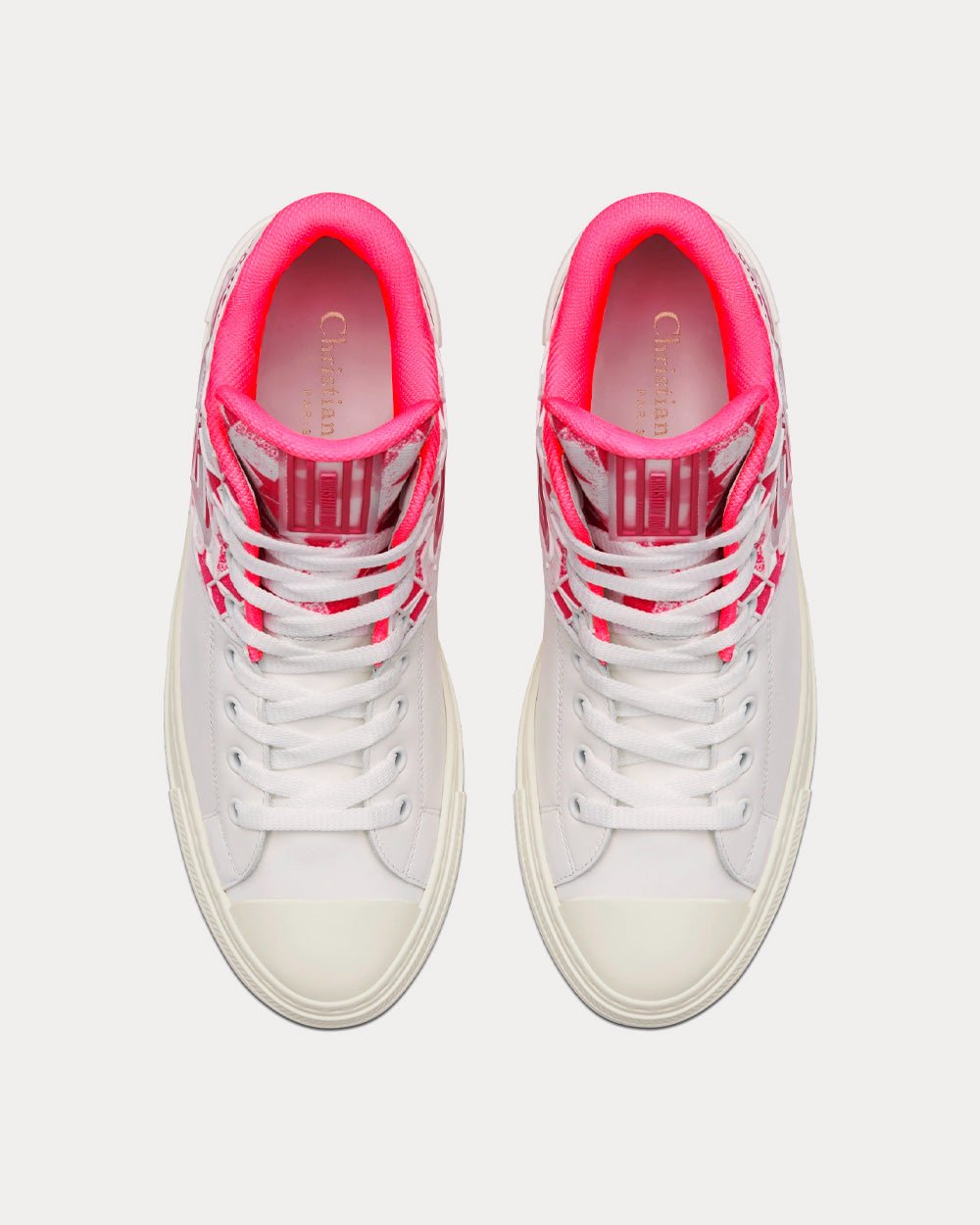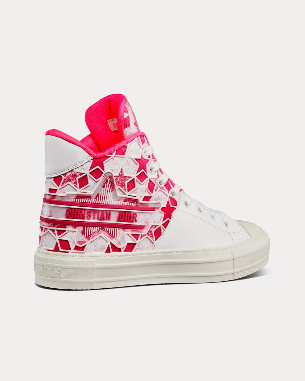 Baskets montantes Dior Walk'n'Dior Star en cuir de veau et tissu technique rose vif et blanc avec motif Dior ÉtoileBaskets montantes Dior Walk’n’Dior Star en cuir de veau et tissu technique rose vif et blanc avec motif Dior Étoile