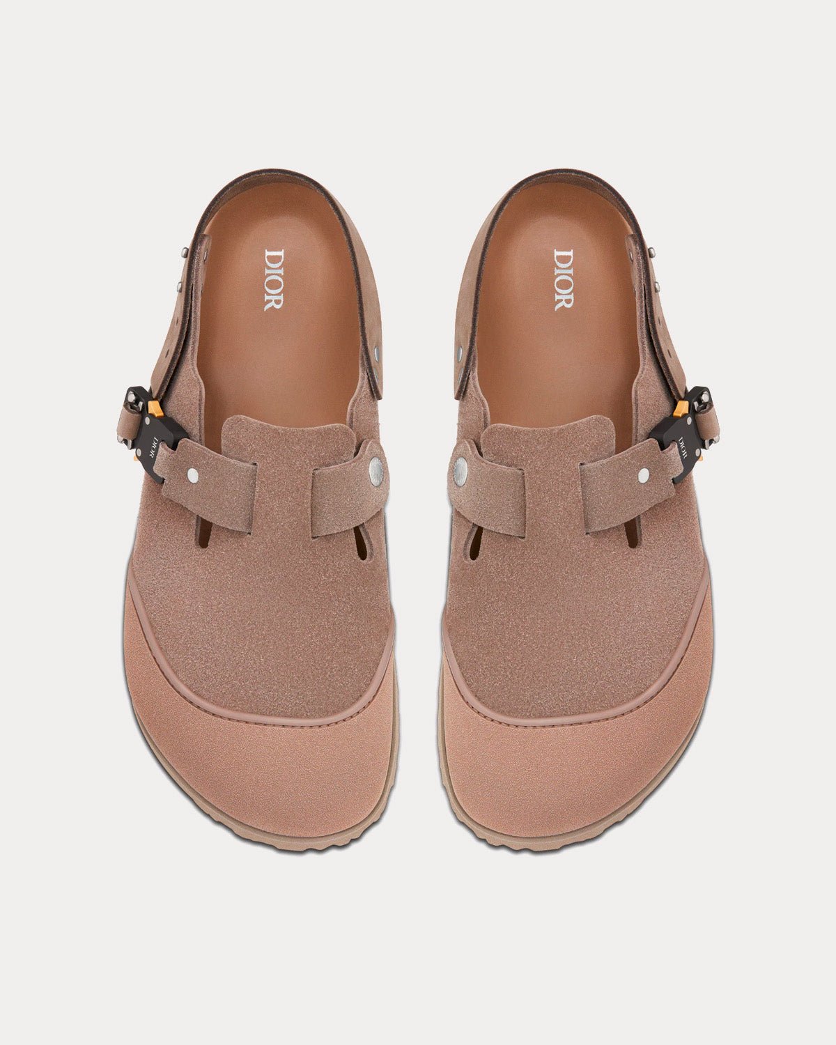 Les mules Dior by Birkenstock pour homme Mules Dior x Birkenstock Mules Tokio en cuir de veau nubuck marron présentent un bout utilitaire renforcé en caoutchouc marron, une bride arrière réglable en cuir de veau nubuck, une boucle en aluminium avec la signature Dior, un rivet signature DIOR by BIRKENSTOCK, une semelle anatomique en liège et cuir de veau lisse, une semelle extérieure sculptée en EVA avec un motif dégradé Dior Oblique et Bones, et une construction soudée. Fabriquées en Allemagne.