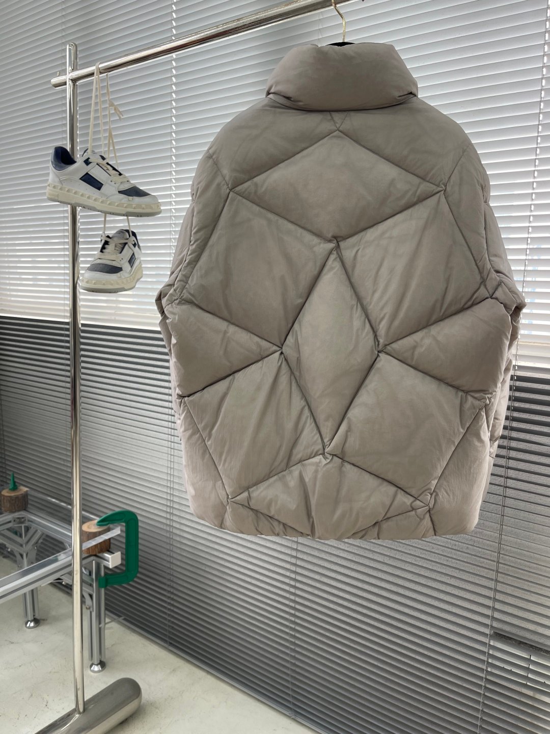 Son design matelassé en forme de losange et son col montant apportent une touche moderne et raffinée, fidèle à l’esthétique de la maison Moncler. La fermeture éclair double sens et les poches latérales zippées assurent praticité et confort au quotidien.