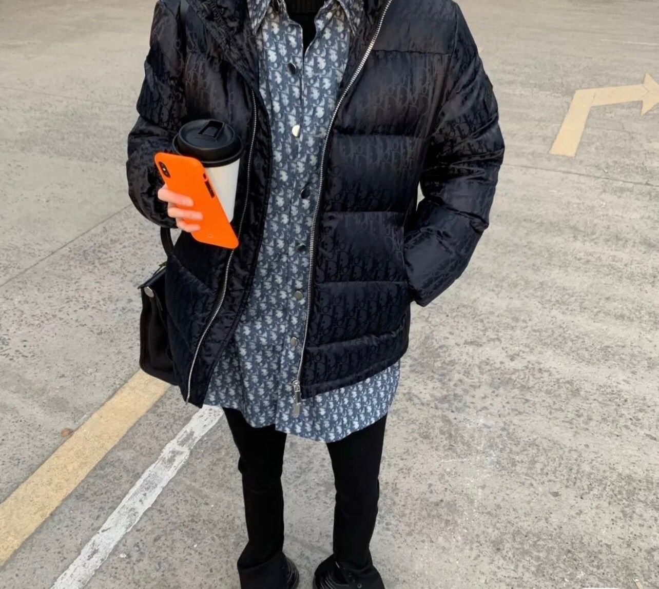 Doudoune Dior noire à motif monogramme ton sur ton, chaude, élégante et légère. Un modèle de luxe iconique, parfait pour l’hiver.