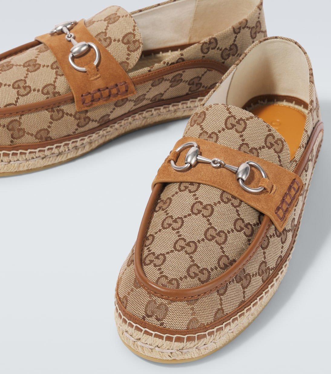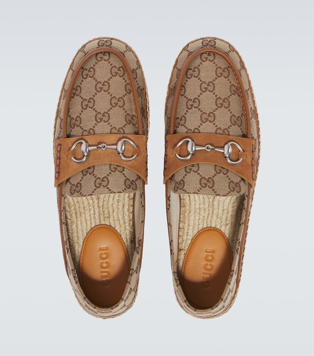 Chaque garde-robe a besoin d’une touche de charme des archives Gucci. Ces espadrilles Horsebit sont confectionnées en Espagne en toile bordée de cuir.