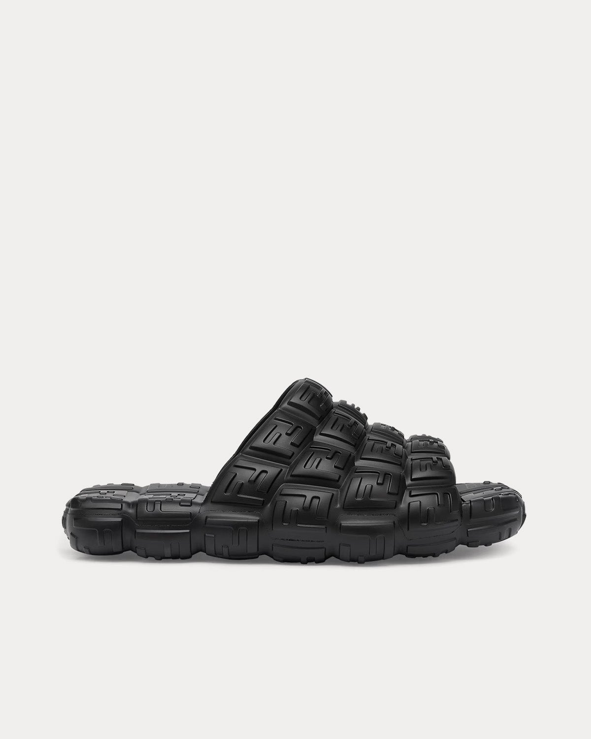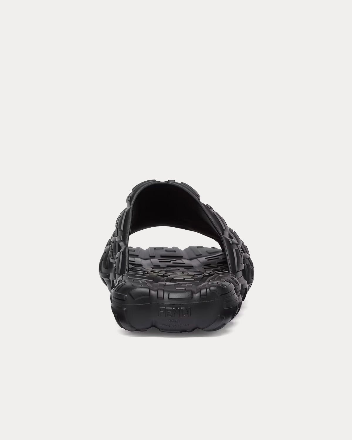 Les claquettes Fendi Cloud pour homme présentent une large bande et sont fabriquées en caoutchouc noir avec des motifs FF en relief. Fabriquées en Italie.