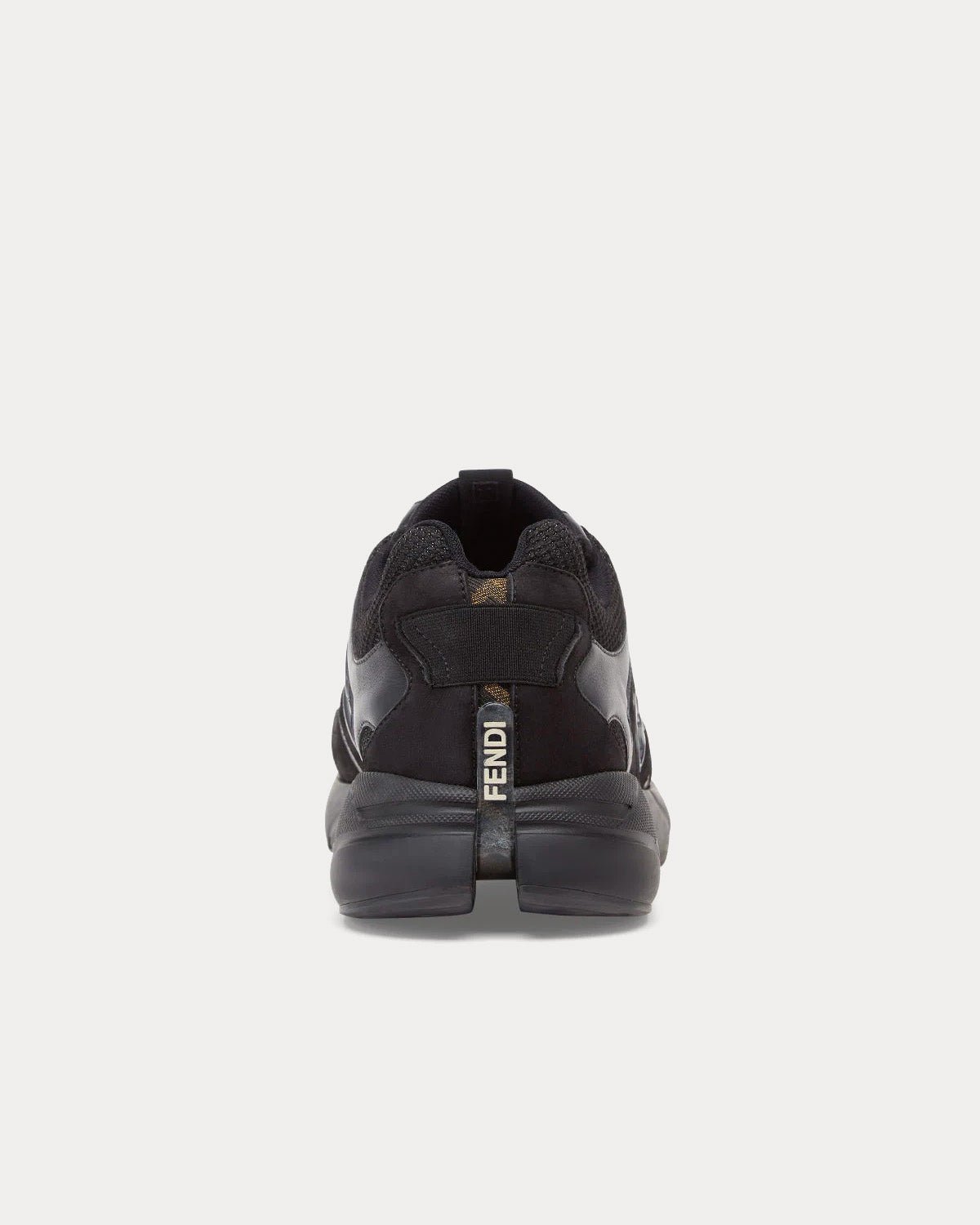 Baskets de course avec motif FF en relief sur les côtés. Semelles ondulées avec FF sur le bout. En nubuck noir avec détails en cuir ton sur ton. Empiècements en tissu FF gris et noir. Fabriquées en Italie.