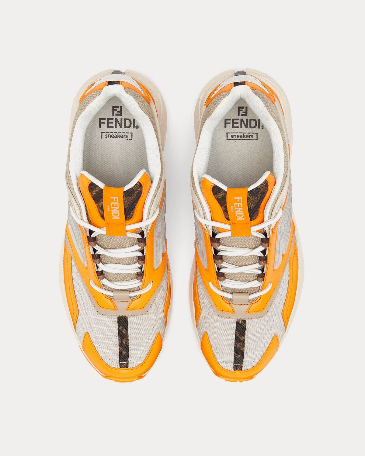 Baskets basses Fendi Faster en cuir nubuck orange/beige